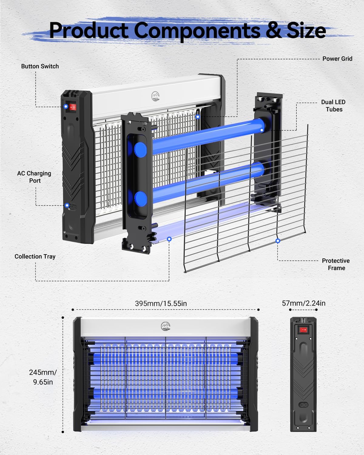 • Long-Lasting & Energy-Efficient - Mosiller Electric Mosquito Zapper with high-efficiency LED lamps, offers longer working time and saves more energy. Don't worry about the trouble of frequently changing bulbs; You can spend every season with peace of mind. (Bulbs are replaceable.)