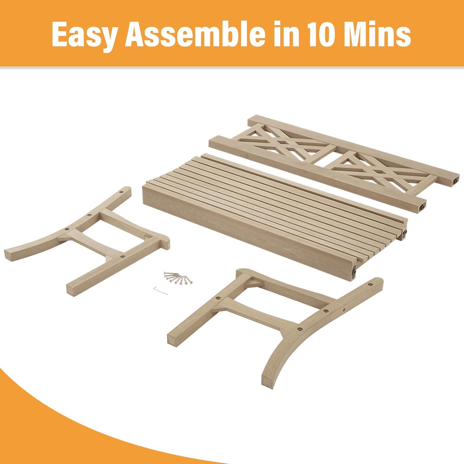 • Quick and Easy Assembly Designed for convenience, this 2-person bench comes with 4 pre-assembled pieces and 8 identical screws. Follow the included manual, and you’ll have your eco-friendly outdoor bench ready in just 10 minutes. All necessary installation tools are included for a stress-free setup.