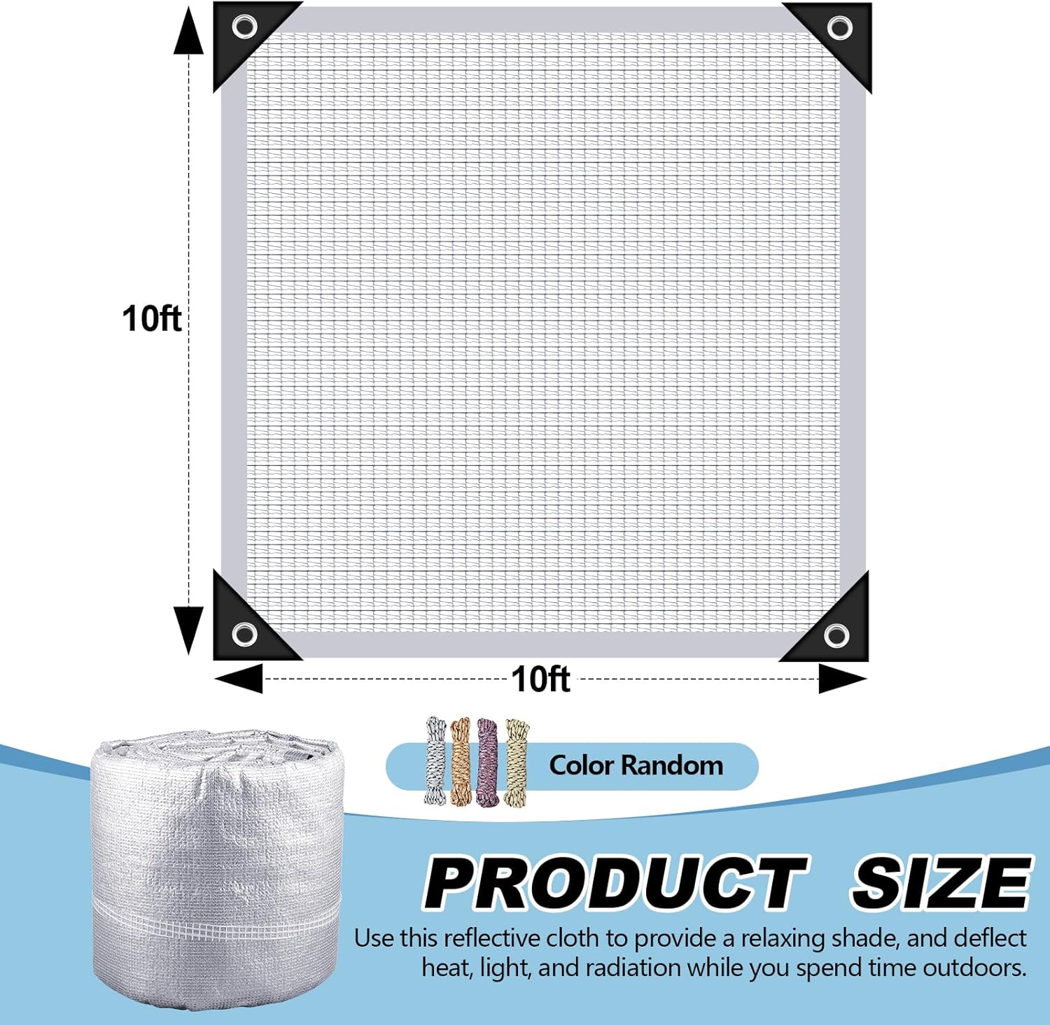 • Large Size for Daily Use: this 10 x 10ft aluminium foil shade cloth is suitable for daily usage; It's designed to meet your different needs, providing a large shaded area to keep your space cool and comfortable