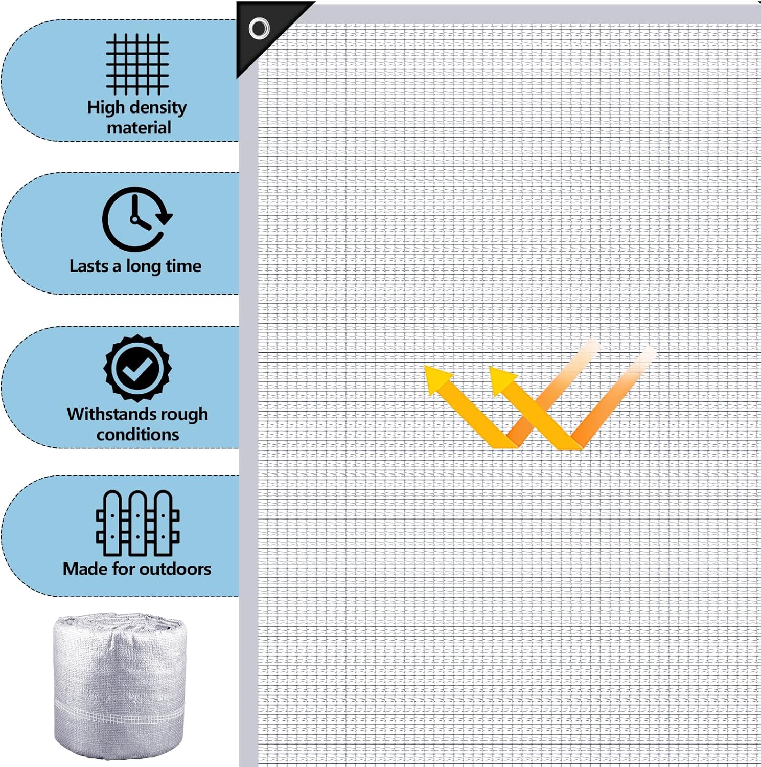 • Material with Excellent Shading Effect: made of aluminium foil film, this 99% reflective aluminium foil sun shade cloth helps in heat dissipation, light reflection, and radiation deflection, maintaining a cool environment even under harsh sunlight; More than just offering high durability, it is resistant to water, heat, fading, corrosion, and shrinkage