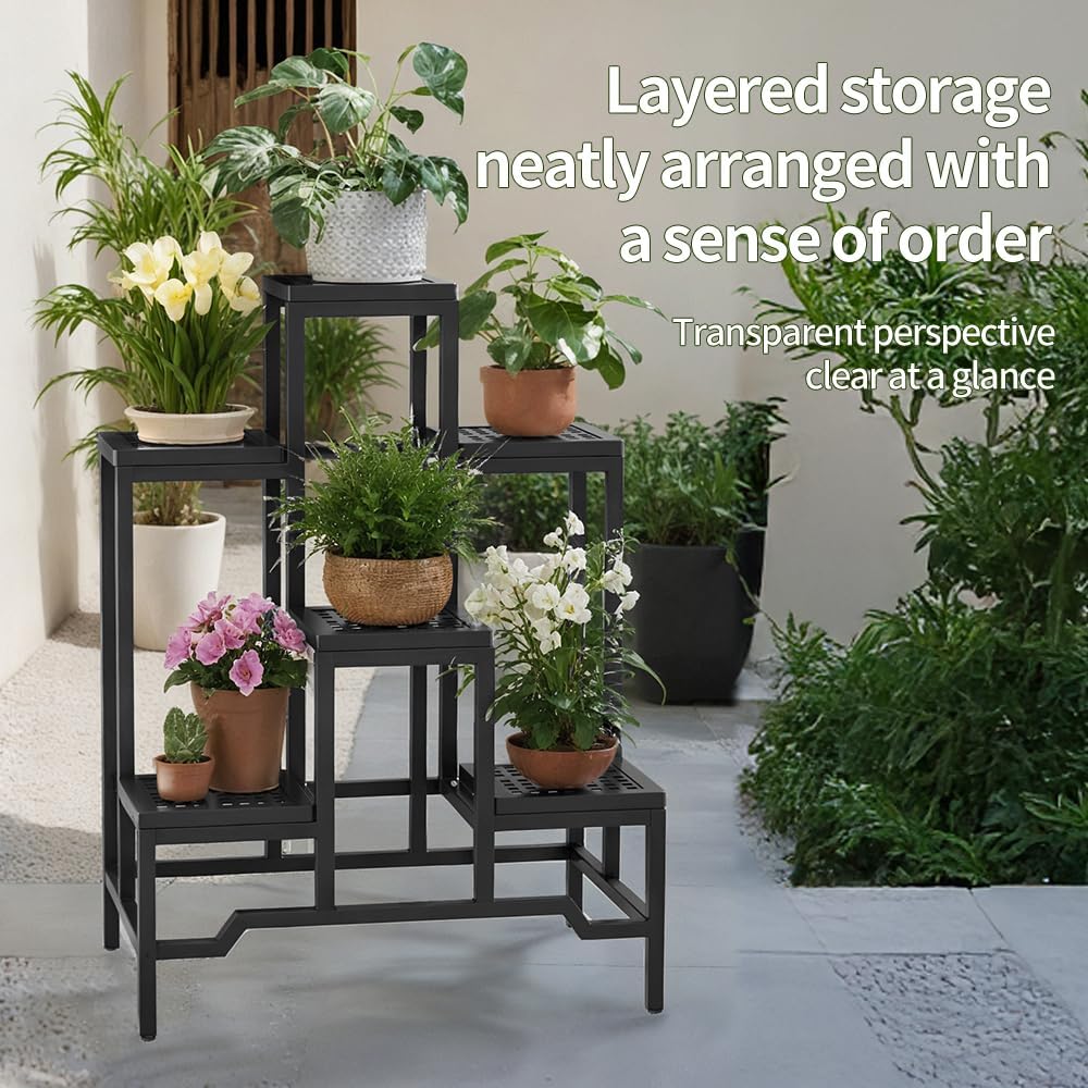 Plant Stand - Aluminum Indoor/Outdoor Flower Rack, Waterproof & Rust-Proof, Stable Support for Pots, Perfect for Living Room, Balcony, Garden, and Office (Black, 6 Tier)