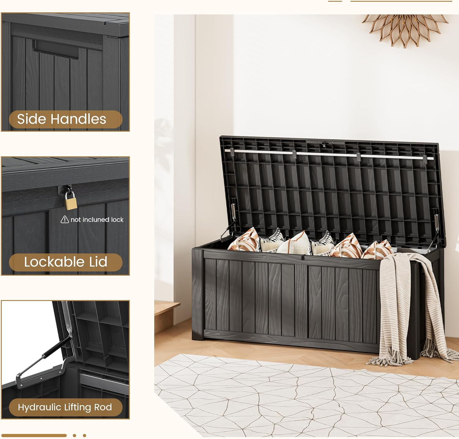 • Ideal Storage Box - With a spacious 120-gallon capacity, this deck box provides ample room to store all your outdoor essentials, including patio cushions, pool accessories, gardening tools, and more. Keep your backyard tidy and organized with this versatile storage solution.