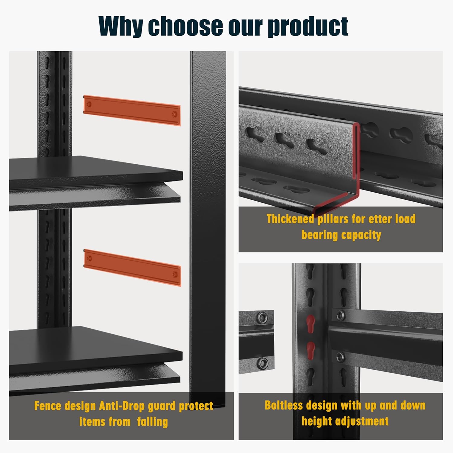 • 【Adjustable Shelving Unit & DIY Free Combination】This metal shelving can not only adjust the height of each layer to meet different sizes of items, but also divide one shelf into two separate shelves .