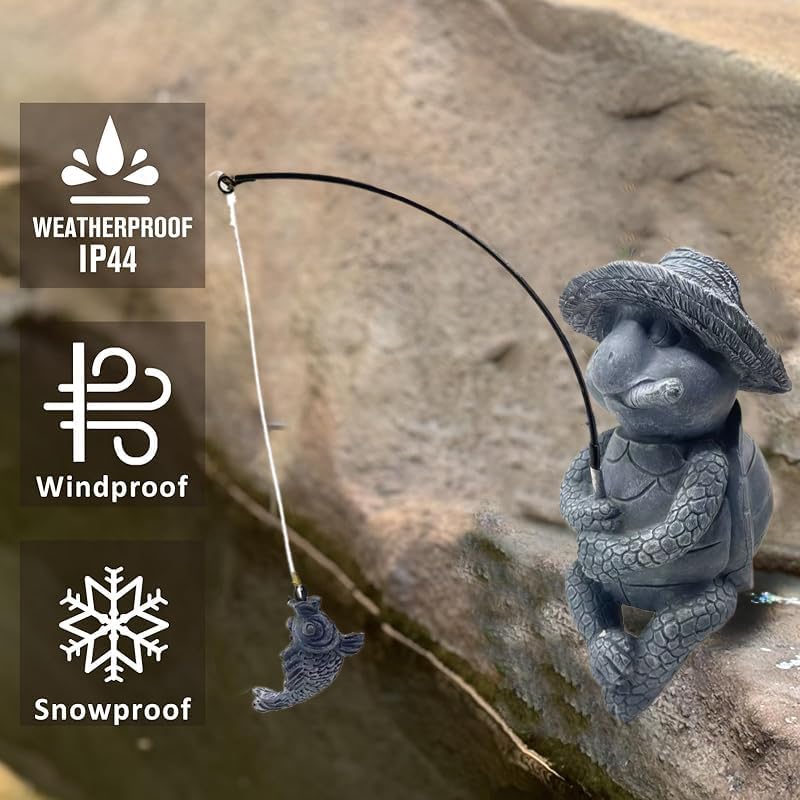 • Weatherproof and Durable: Made from high-quality resin, this weatherproof tortoise fishing statue is built to withstand wind, rain, sun, and snow, ensuring long-lasting beauty for all seasons in your garden, fish pond, or outdoor spaces.