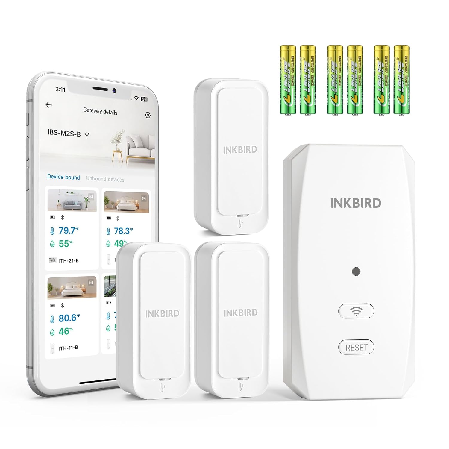 • Lifetime Warranty & Waterproof Design: What you get: 3*Hygrometer Thermometer, 1*M2S Gateway, 1*welcome guide, Lifetime warranty. INKBIRD's trusted support backs this dustproof/water-jet resistant sensor.