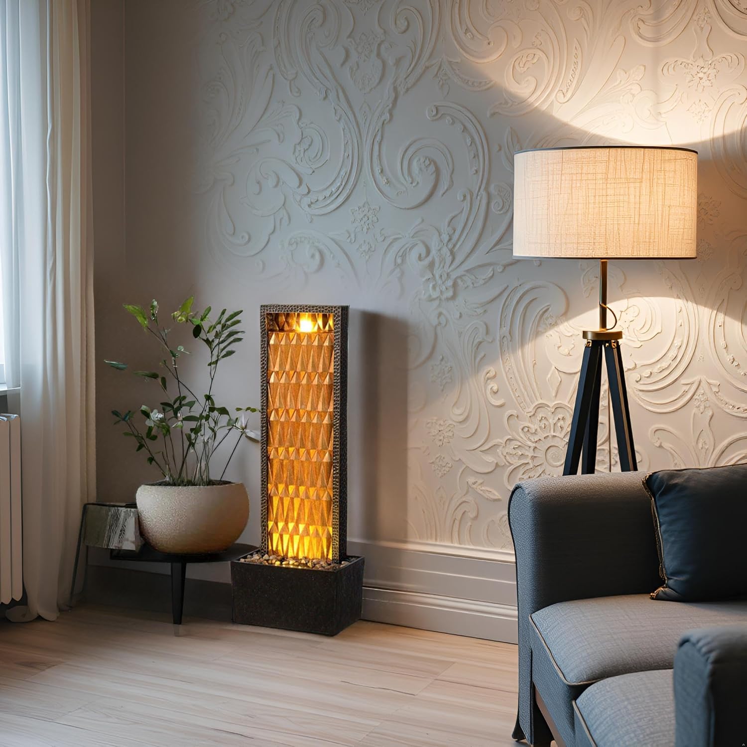 • Luxurious Metallic Gold Design: The elegant golden finish, paired with a mesmerizing waterfall effect, adds a touch of opulence and sophistication to any setting.