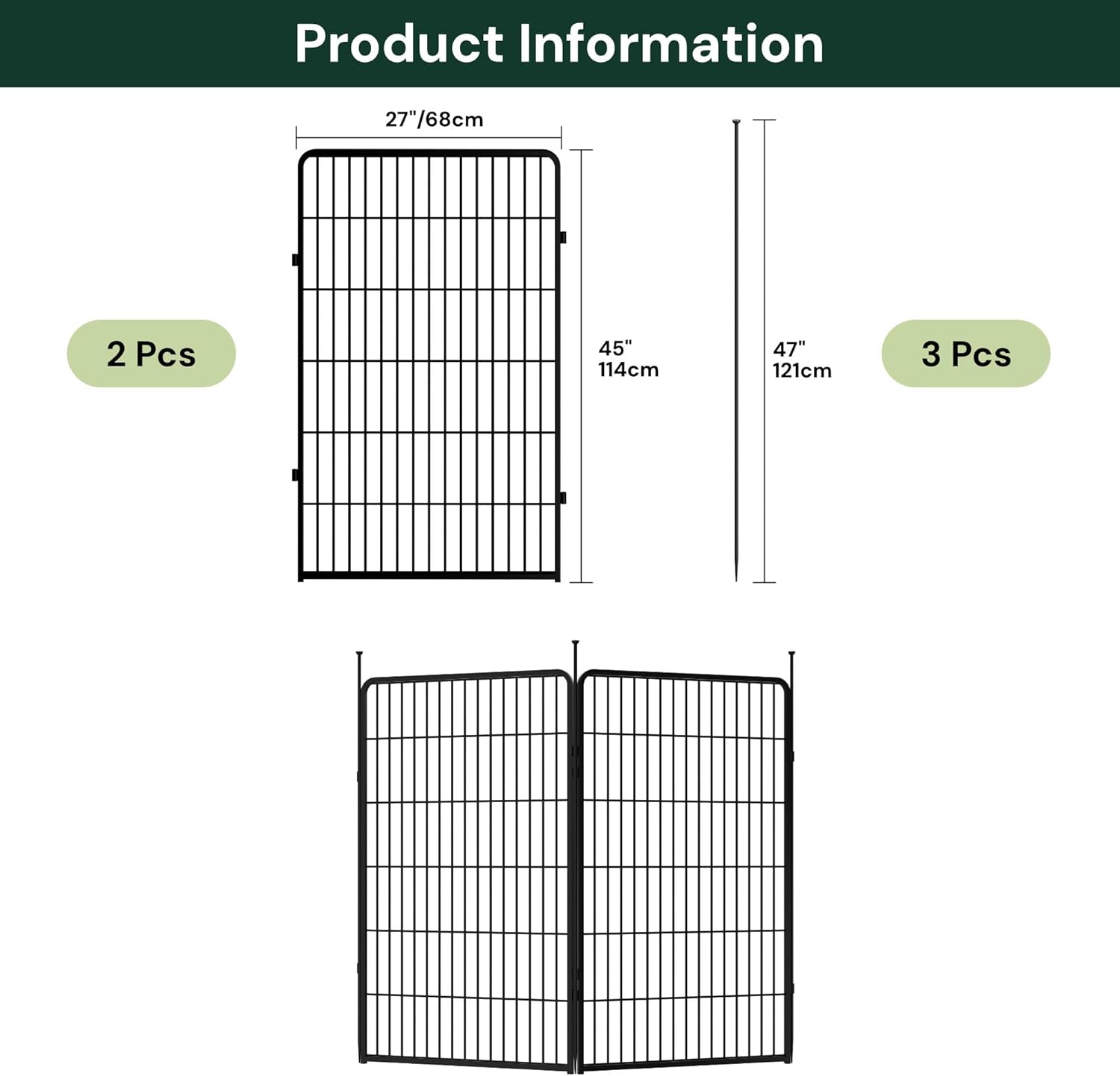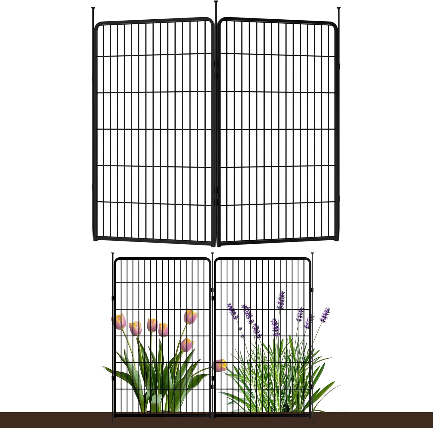 Doorless Garden Fence 45 in(H) x 4.5 ft(L) 2 Panels, Heavy Duty Metal Animal Barrier Fence, No Dig Fence for Dogs, Rabbit Fence for Garden, Black