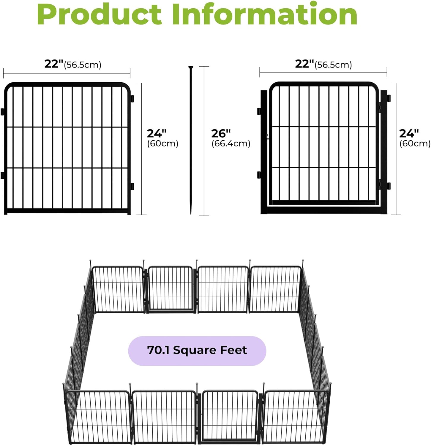 Decorative Garden Fence with Gate 24 in(H) x 29.7 ft(L) 16 Panels, Heavy Duty Metal Animal Barrier Fence for Yard, Flower Bed Fencing, Garden Border Fence, Easy Set Up, Black