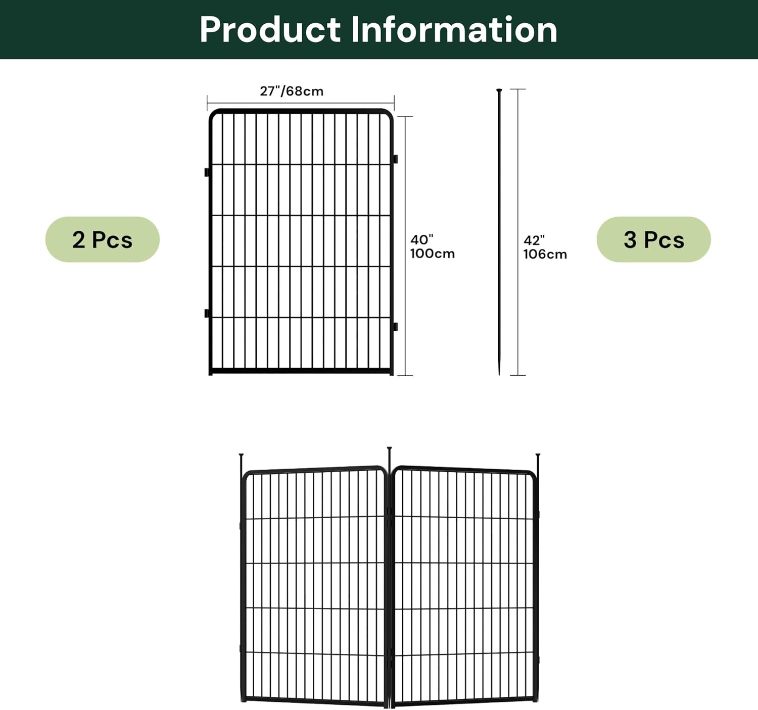 • Easy to Assemble: Say goodbye to complicated assembly! Garden fence with gate could be assembled in just a few minutes without tools, you only need to put the two fence panels facing out and align the rings, and finally insert the pole into the ring to fix it. The pole easily inserts into the soil, providing great stability