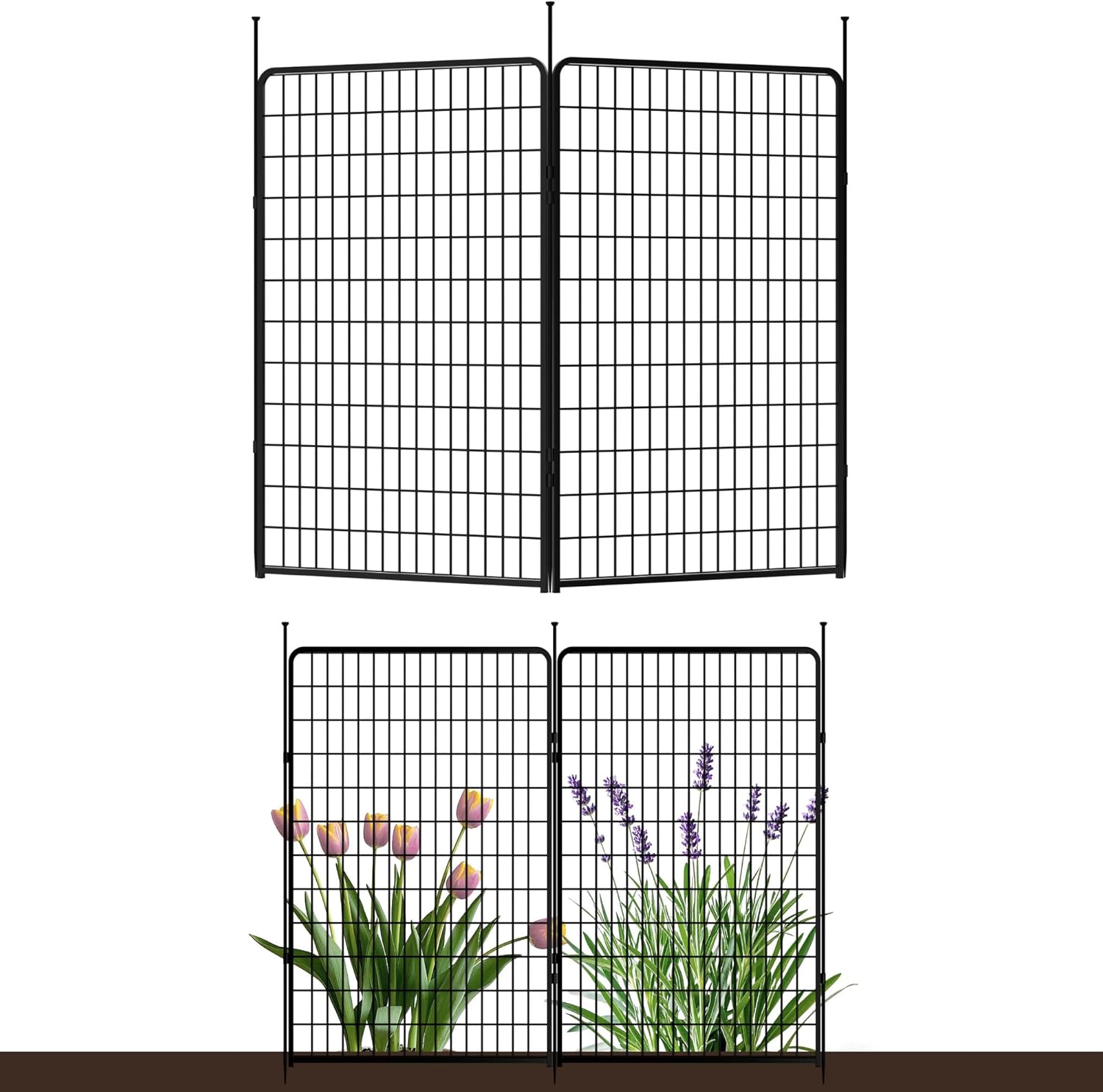 Doorless Garden Fence 50 in(H) x 5.1 ft(L) 2 Panels, Heavy Duty Metal Animal Barrier Fence, No Dig Fence for Dogs, Rabbit Fence for Garden, Black