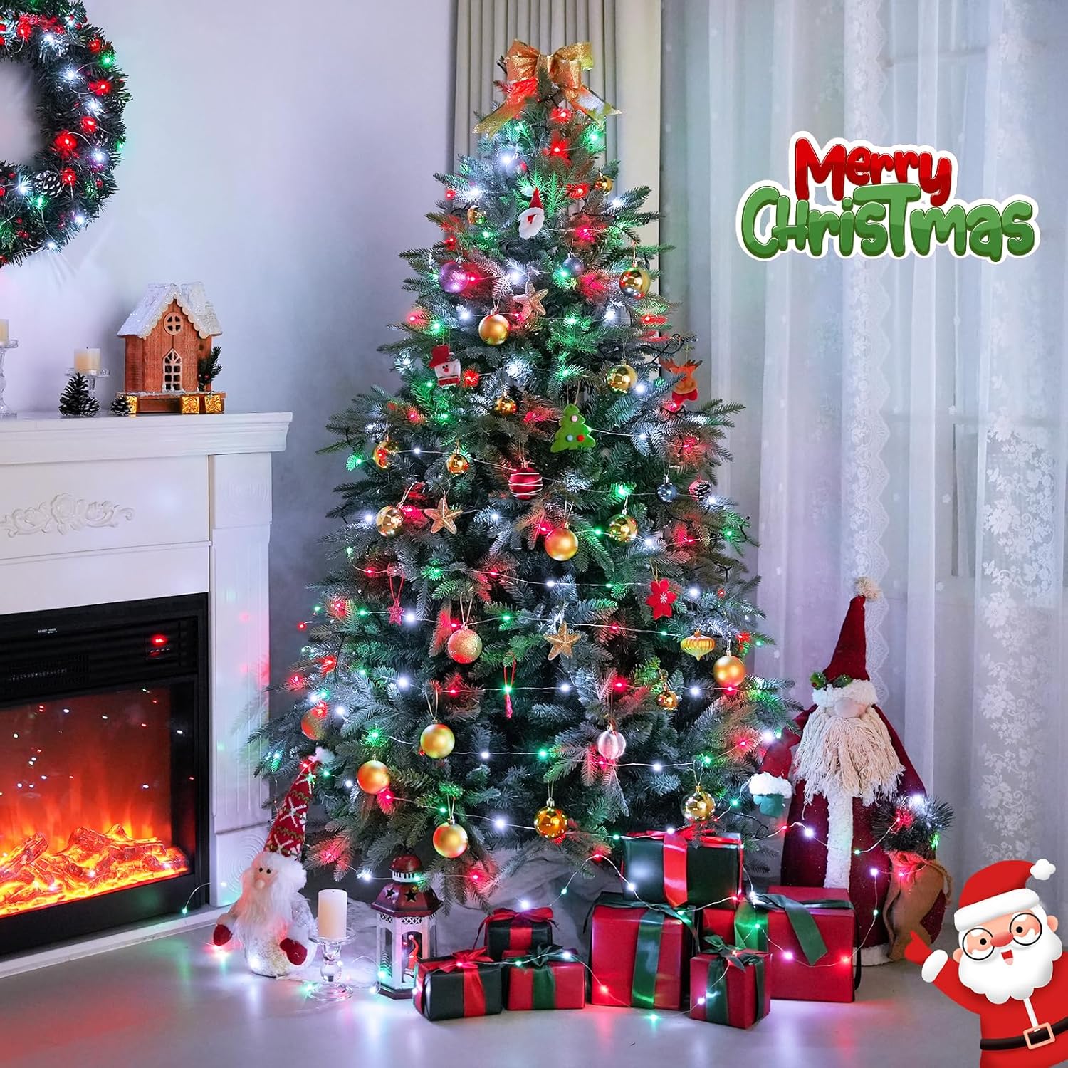 • 【8 Impressive Lighting Modes Solar Fairy Lights】our red green white Christmas lights with 8 different modes (steady/flash/smooth/Steady-on, etc), can create vibrant Christmas atmospheres. Lighten your Lights and brighten up your family and friendship. The solar Christmas fairy lights were just icing on the cake.