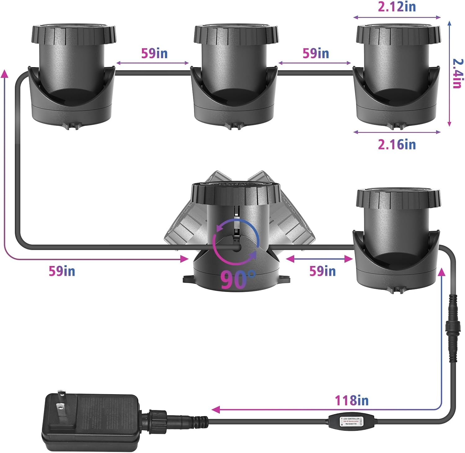 T-SUN LED Pond Light, 5 Head Lamps Submersible LED Pond Lights Color Changing Garden Pond Light with Remote Control, RGB Fish Tank Lights Fountain Spotlight for Garden, Pool, Aquarium Tank(5 Headlamp)