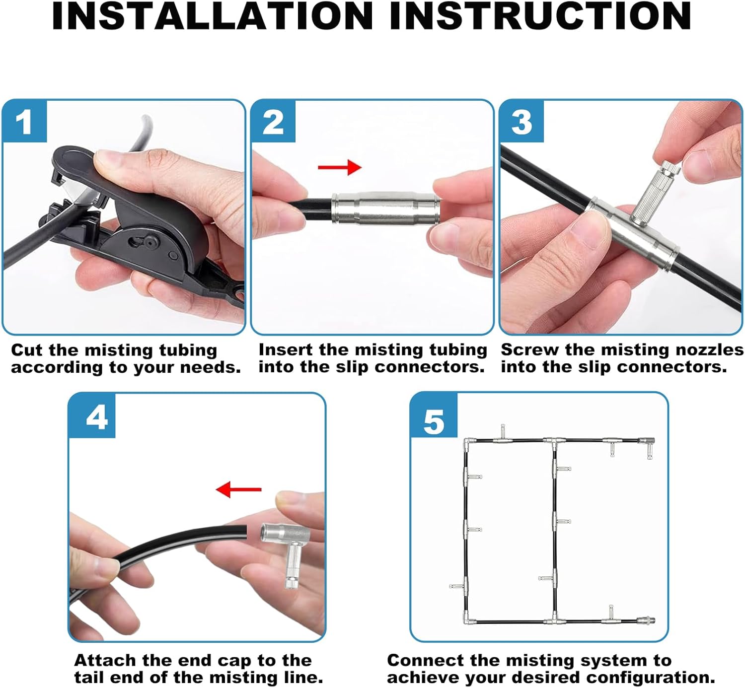 • 【Complete Misting Solution】 This kit includes 10 precision misting nozzles and 10 durable slip connectors, giving you all the essential components for a fully functional outdoor cooling setup or easy replacements.