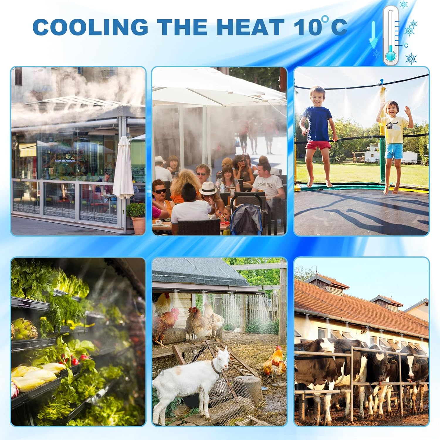 • 【Effective Cooling Performance】 Engineered to produce a fine, refreshing mist that can lower ambient temperatures by up to 20°C (68°F), this low-pressure system operates safely within 0-280 psi—ideal for hot summer days.