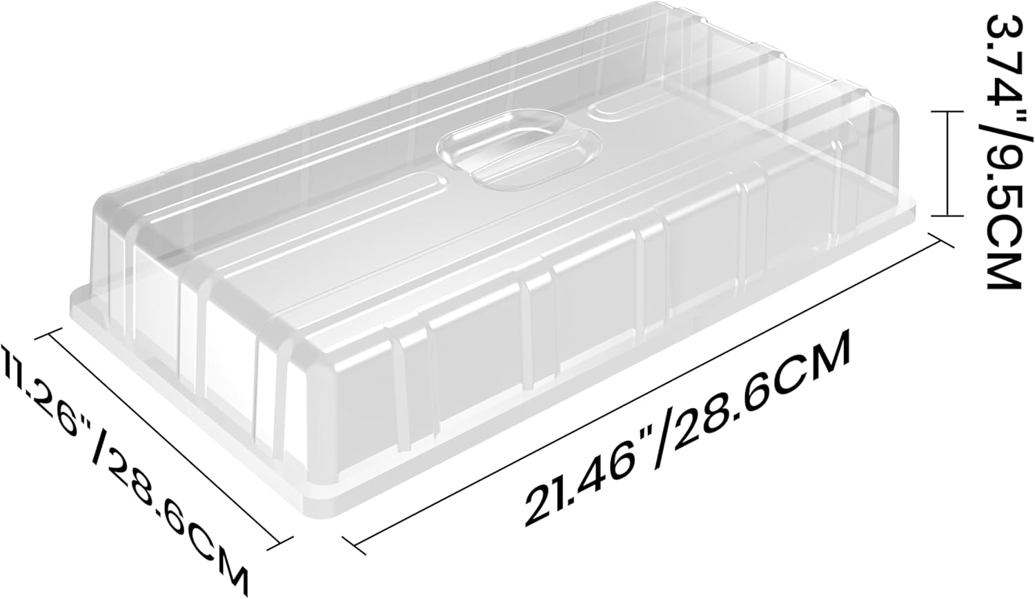 • 【Universal Compatibility】Designed to fit securely on most standard 1020 trays, including popular brands, these domes offer versatile use for a wide range of gardening setups. With dimensions of 21.25" (L) x 11.02" (W) x 3.6" (H), they perfectly accommodate standard 10x20 trays, making them a seamless addition to your gardening toolkit.