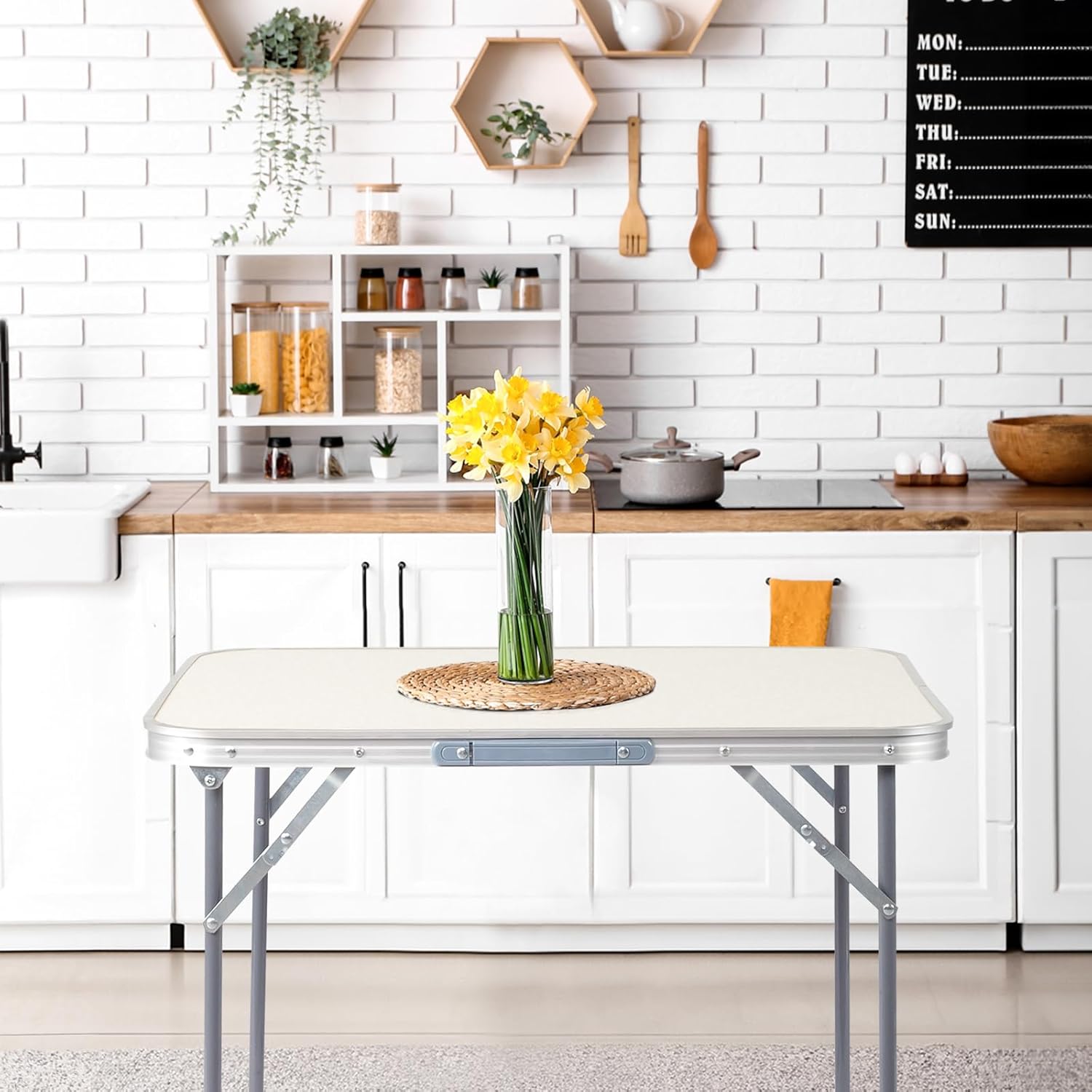 • 【Durable】The folding table has a aluminum alloy frame and a wear-resistant desktop.The stable structure strong and load-bearing capacity can withstand 88 pounds of weight