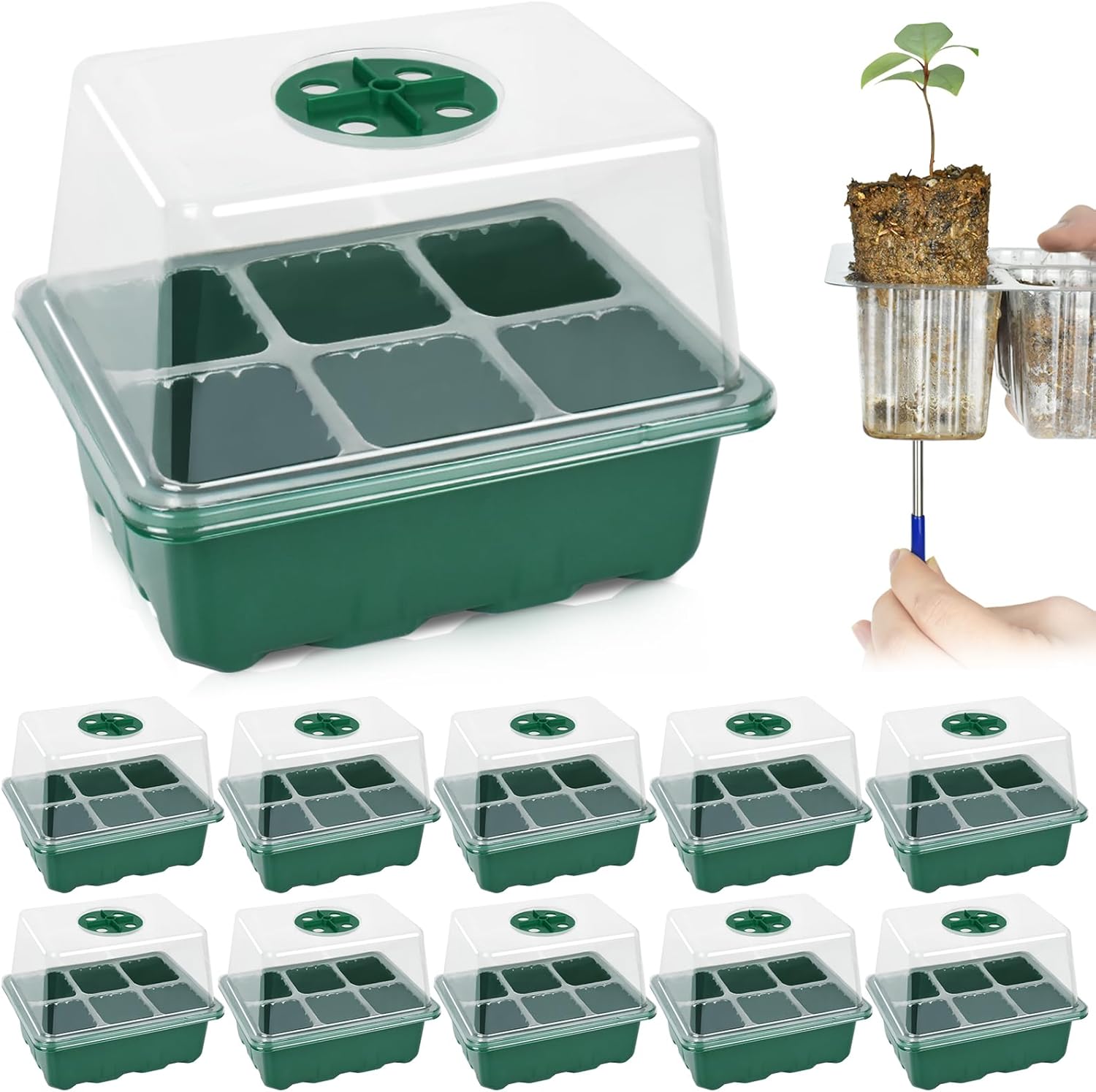 • Clear for Monitoring: The transparent cover mimics a greenhouse environment, letting light in for photosynthesis while maintaining the right humidity levels. It also enables easy observation of seed growth progress.