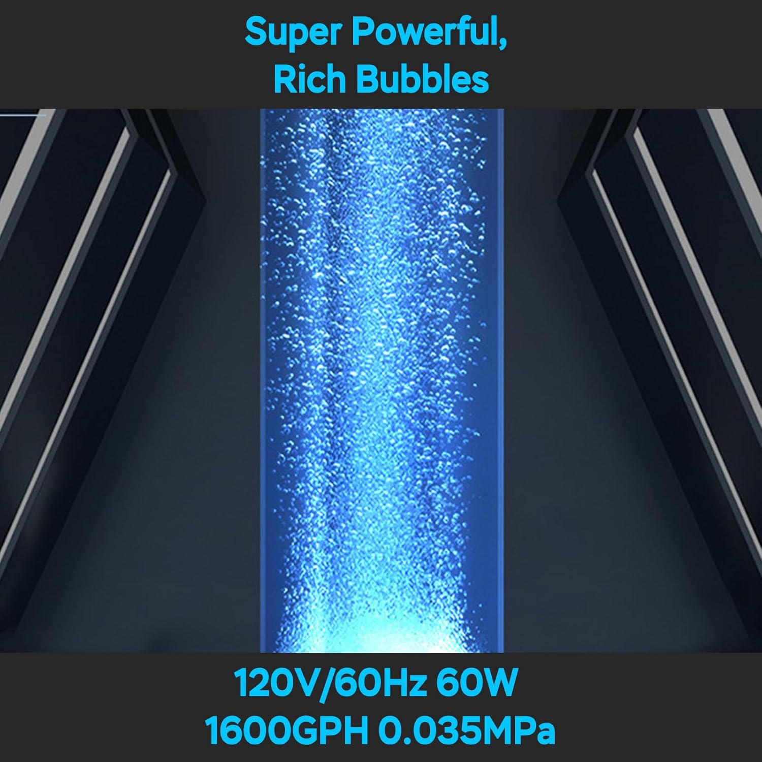 • VERSATILITY - Ponds/Fish Farms/Seafood Tanks: Maintain optimal oxygen levels. Septic Systems: Accelerate waste breakdown. Hydroponics: Supercharge root growth. This pond bubbler handles the toughest oxygenation challenges with ease!