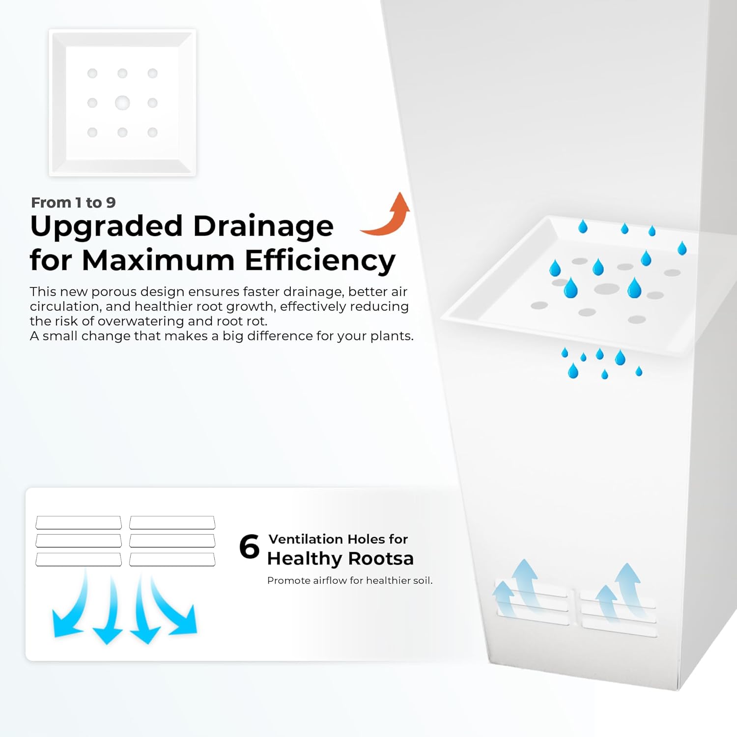 • Slotted Side Ventilation: Designed with slotted ventilation holes on both sides to improve airflow, enhance soil breathability, and support plant health.