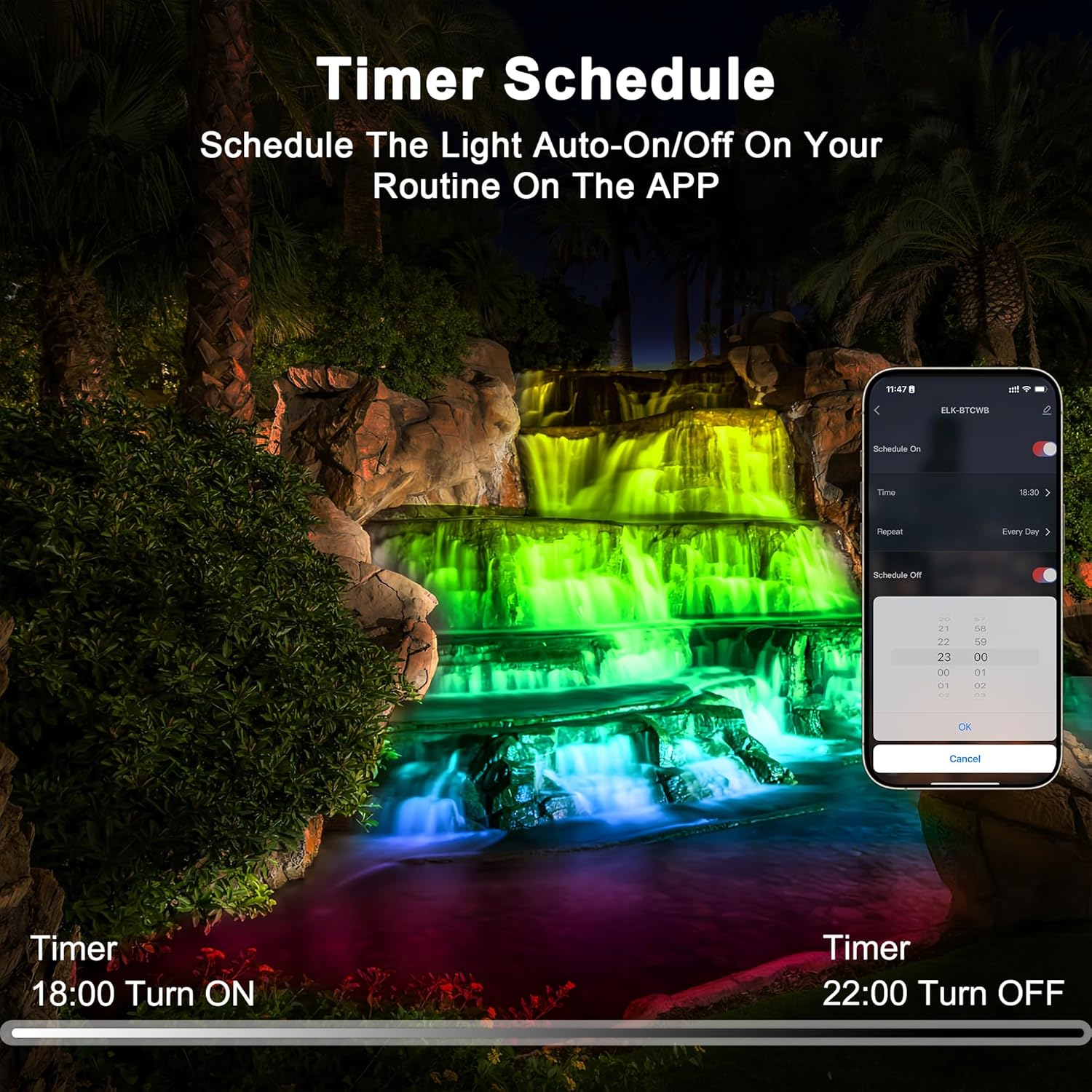 • [APP CONTROL & TIMER FUNCTION] This smart pond light supporting APP control, just tap your smart phone, you can remotely control millions of RGB color combinations, adjust the brightness of the light, play music, and design your favorite garden scenes. You can also preset the time, no need to repeat the operation, Save time and electricity!