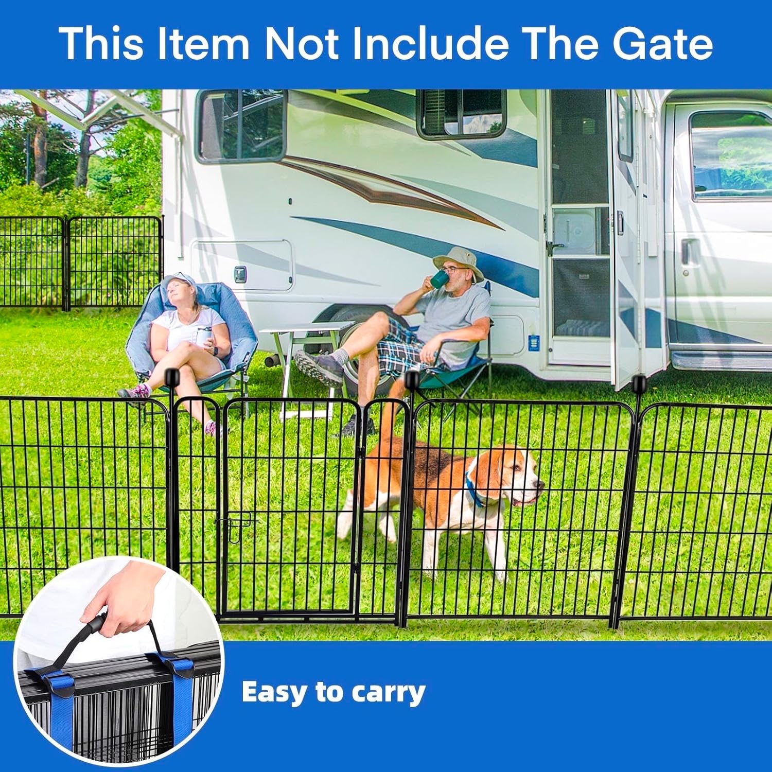 • Garden Fence for Dogs: Adavin Garden Fence with Gate Consists of 8 Panels 54 Inches High X 27 Inches Wide, Total Length of 17.7 Feet. This Black Metal Decorative Garden Fencing is Welded with Thick Heavy Metal Material, Coated with Rust-Proof Coating, and The Spacing of The Barbed Wire is Small.Important: This fence set has no gate