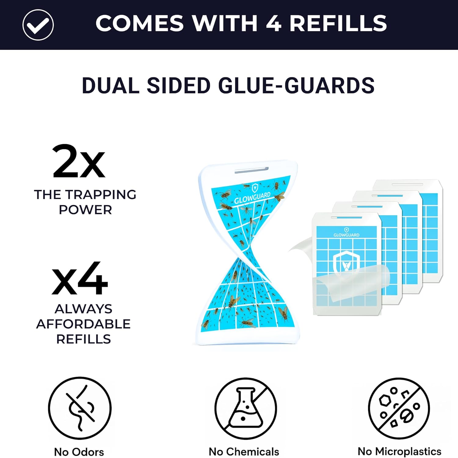 • Ultra-Bright 360° Attraction: Our patented Ultra-violet Nanometer light wave technology is dispersed in a 360° field of view to attract flying insects from every angle, unlike wall-plug devices with only 180 degree line-of-sight. Includes 4 double-sided glue cards with 2X the surface area of wall-plug traps