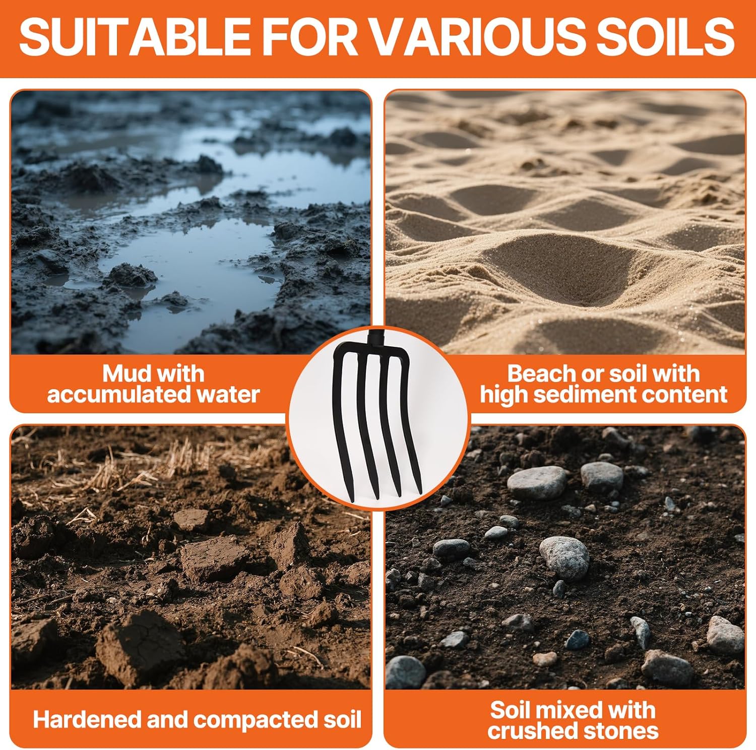 • 1.Heavy-Duty 4-Tine Design: Perfect for digging,aerating soil,and lifting roots or compost without damaging plants.Ideal for gardening,composting,and harvesting root crops like potatoes.
