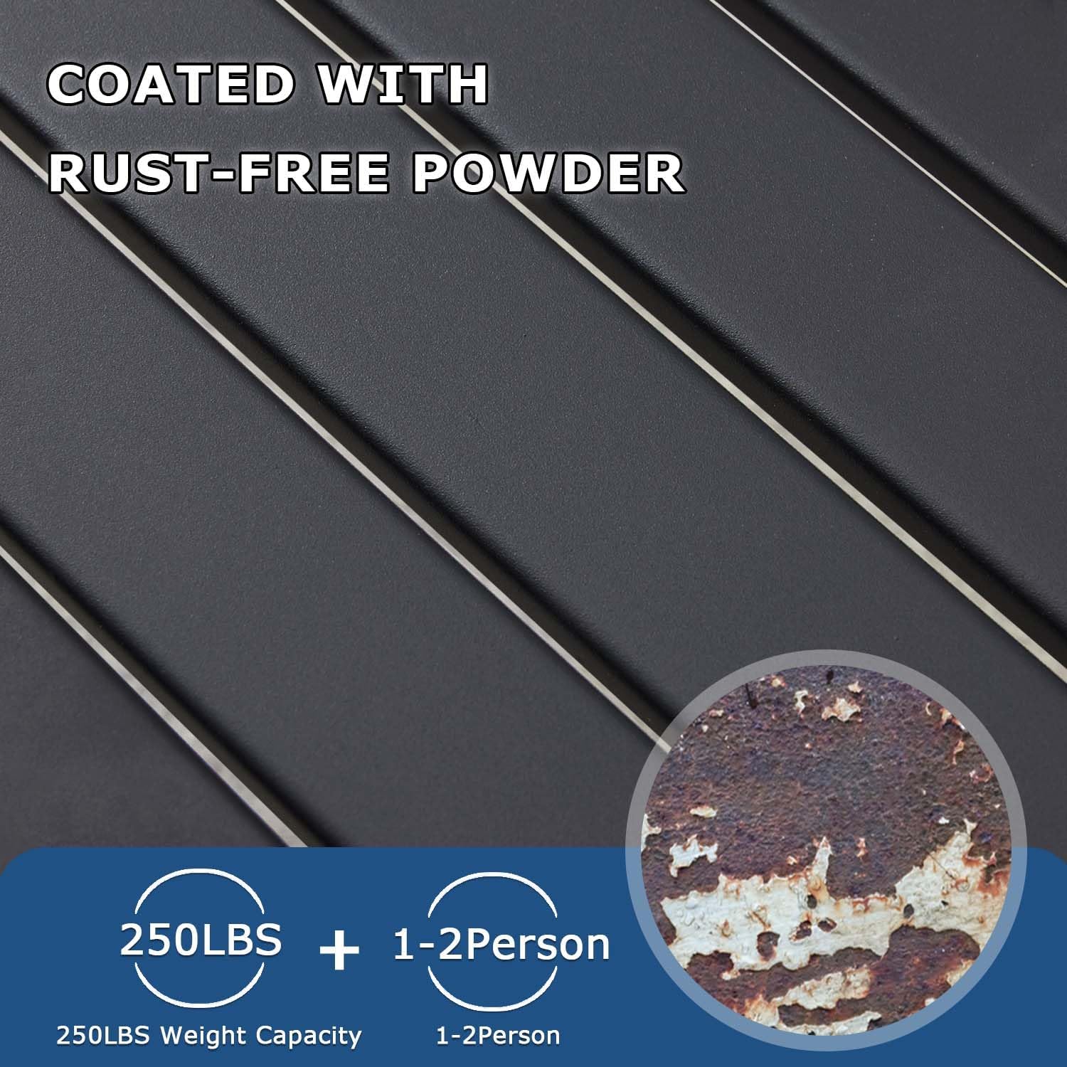 • 【Weatherproof Design】Crafted from durable iron construction, this outdoor metal bench withstands various weather conditions. Engineered to resist common outdoor wear better than wood