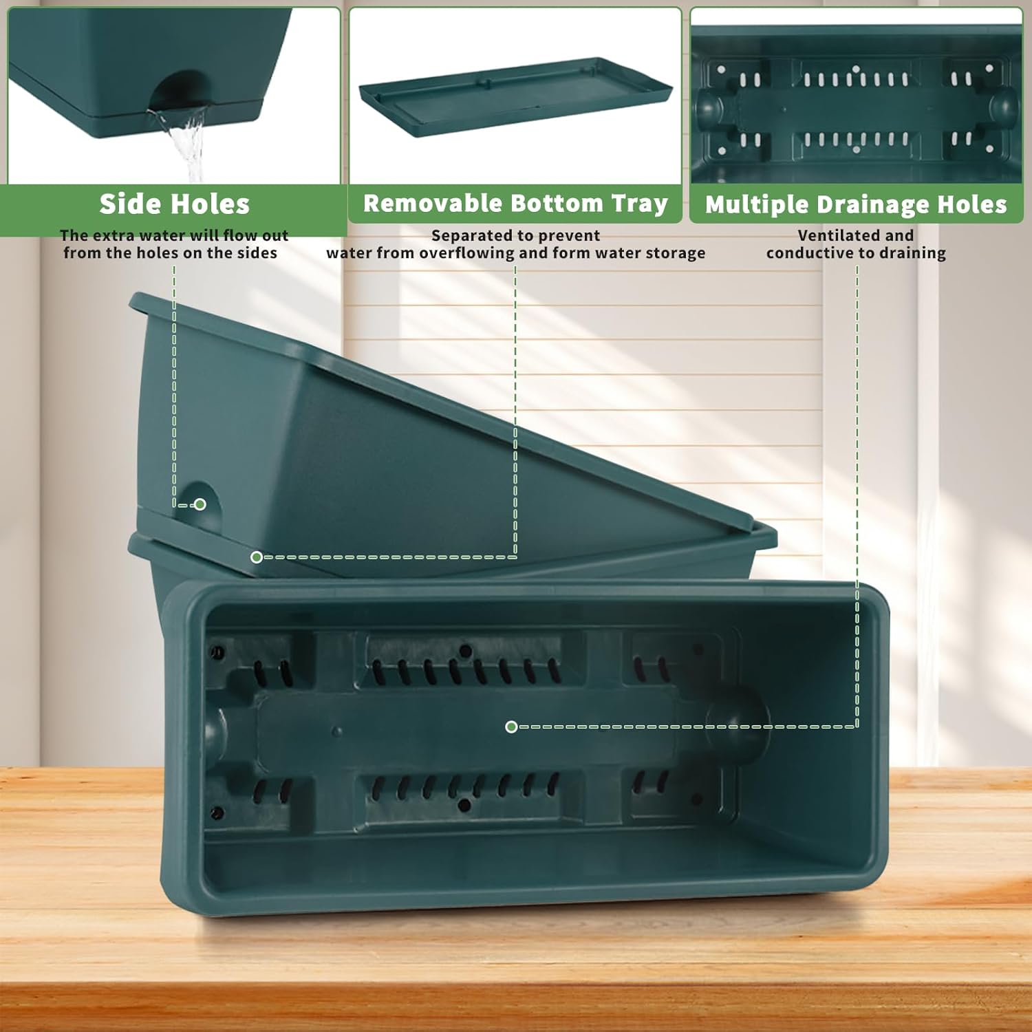 • Water Storage & Drainage Design: The drainage system of the hanging planter box features breathable drainage design ,ensures proper water management ,as each box has bottom holes for drainage ,a tray to collect water to prevent root rot while storing the proper amount of water to maintain perfect humidity levels for healthy plant growth