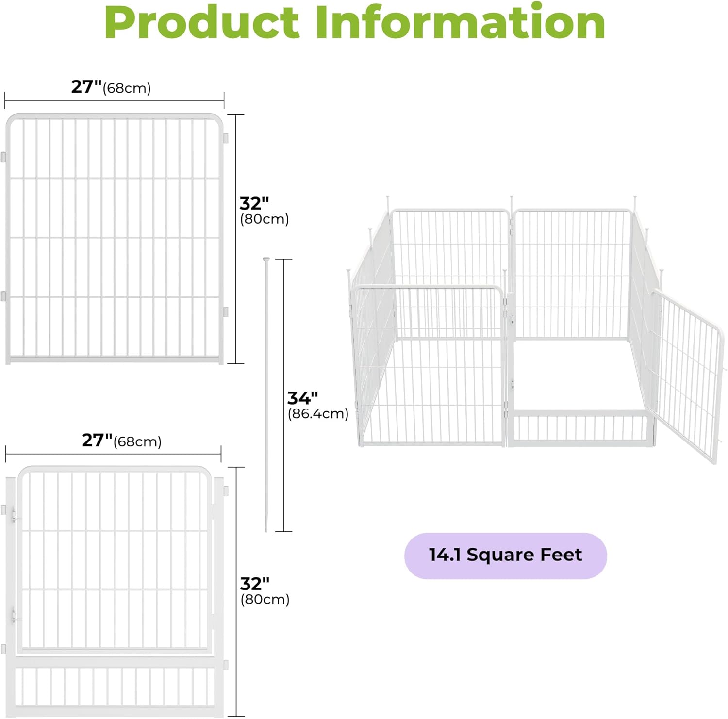 Decorative Garden Fence with Gate 32 in(H) x 17.8 ft(L) 8 Panels, Heavy Duty Metal Animal Barrier Fence for Yard, Flower Bed Fencing, Garden Border Fence, Easy Set Up, White