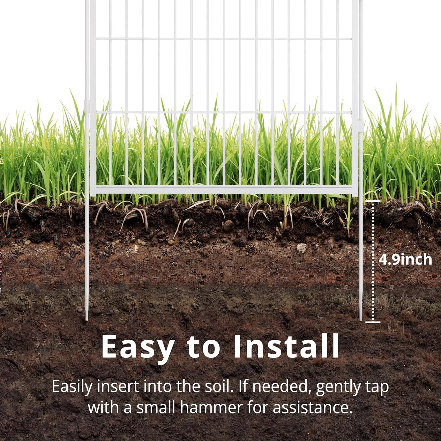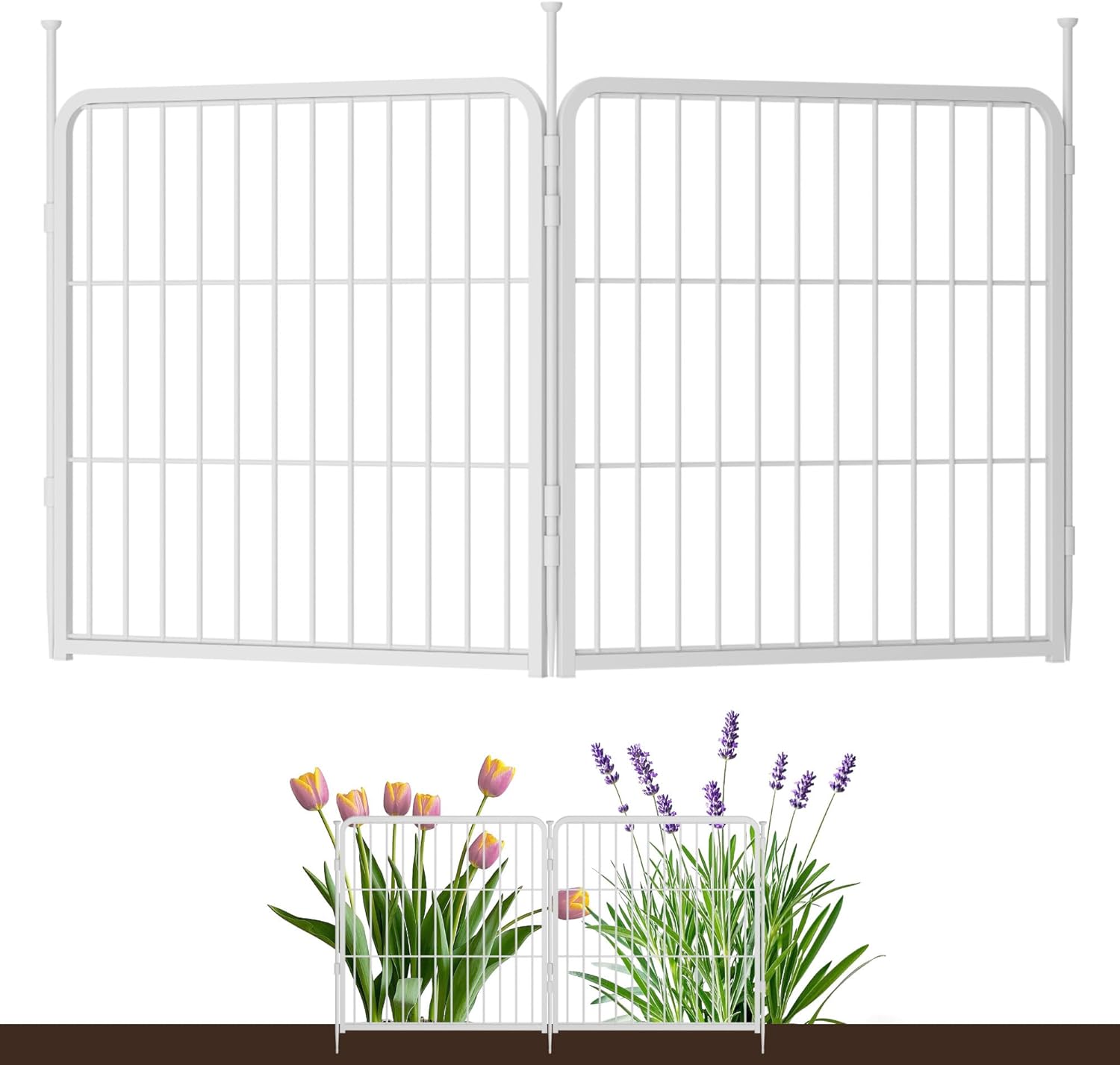• Easy to Assemble: Say goodbye to complicated assembly! Garden fence with gate could be assembled in just a few minutes without tools, you only need to put the two fence panels facing out and align the rings, and finally insert the pole into the ring to fix it. The pole easily inserts into the soil, providing great stability