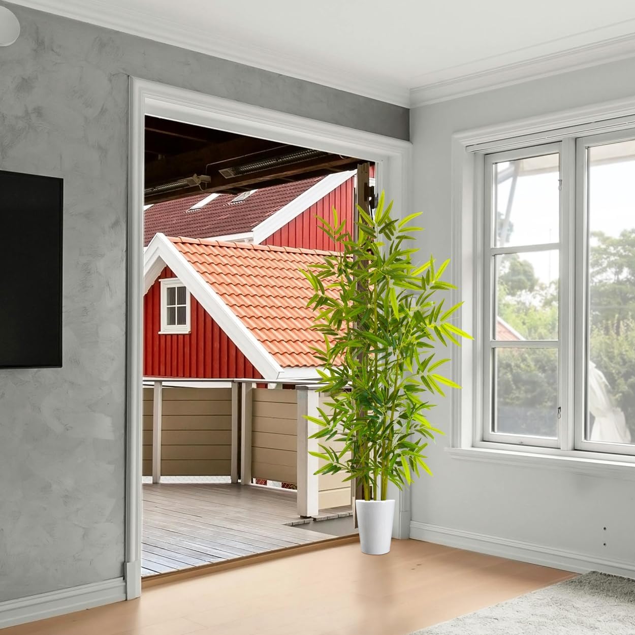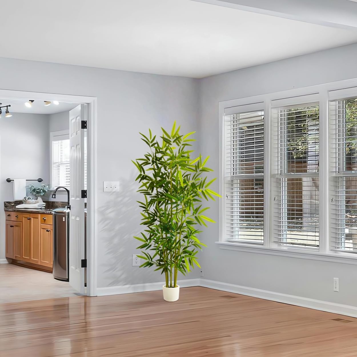 • 6ft tall artificial bamboo tree with luxury white planter(6.9"Diameter,6.9"Height)