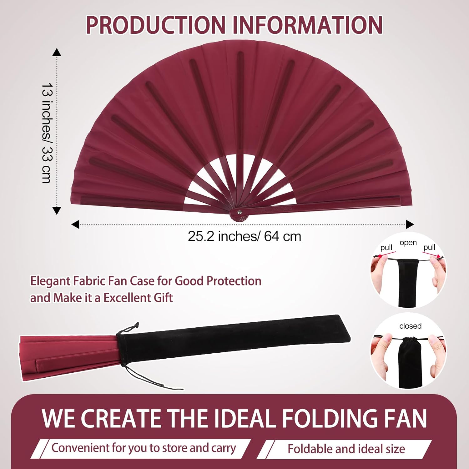 • Material: the handheld folding fans are made of plastic and nylon-cloth fabric, which is sturdy and durable; Practical size: each folding fan is measured about 13 inches/ 33 cm in length, the unfolding fan length is about 24 inches/ 61 cm, which is foldable and lightweight