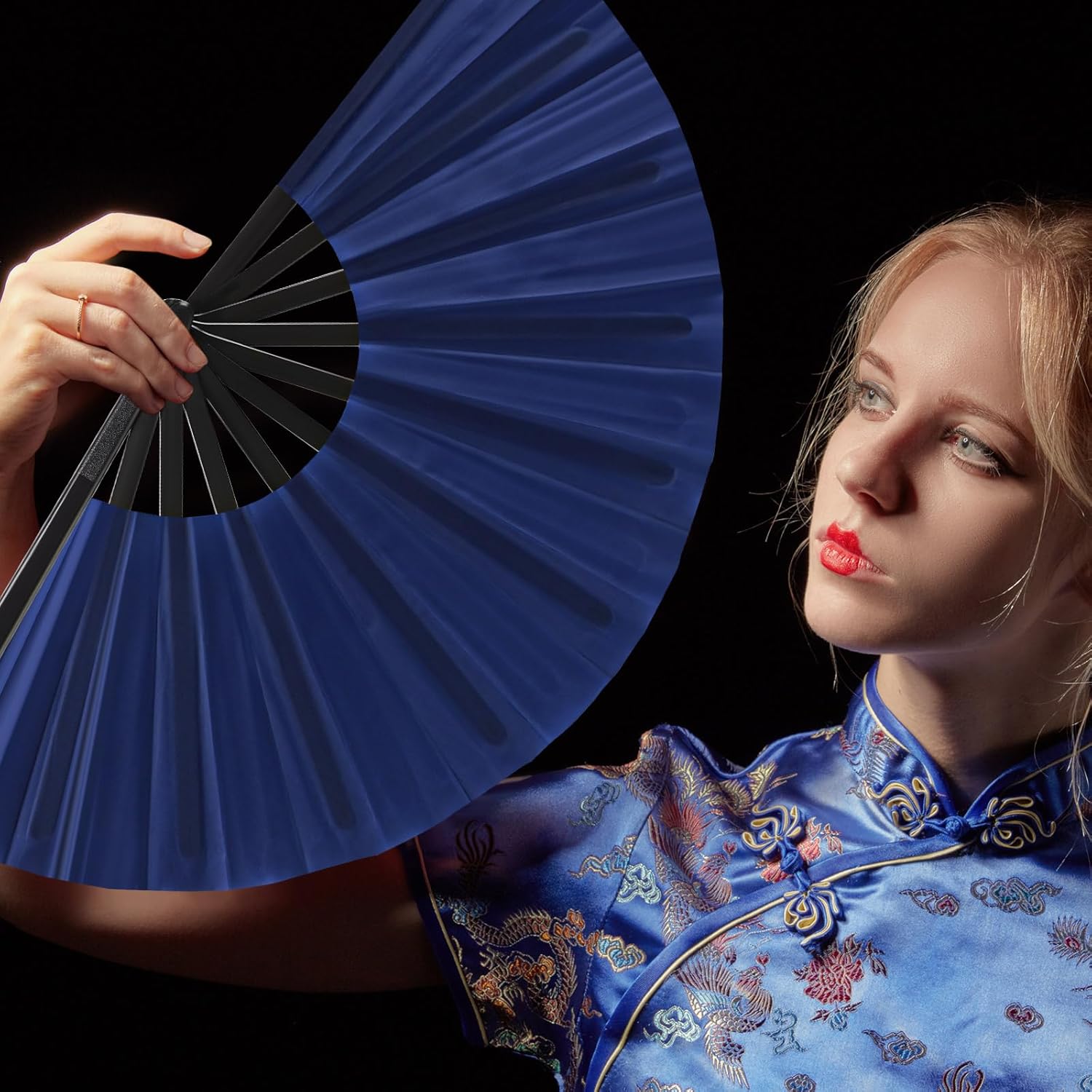 Blulu 4 Pcs 13 Inch Large Folding Hand Fans for Line Dancing Big Clapping Popping Raves Fans Bulk for Dancing Boots on the Ground Festival Party Decoration(classic Style, Navy, 13 Inch)