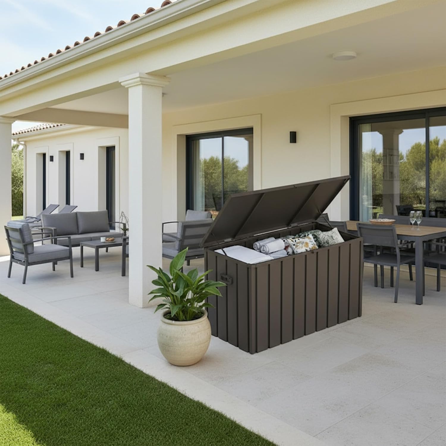 • Galvanized Steel Reinforced Lid:This sturdy storage box features a galvanized steel-reinforced lid that is fade-resistant, weatherproof, and rustproof for at least 2 years.