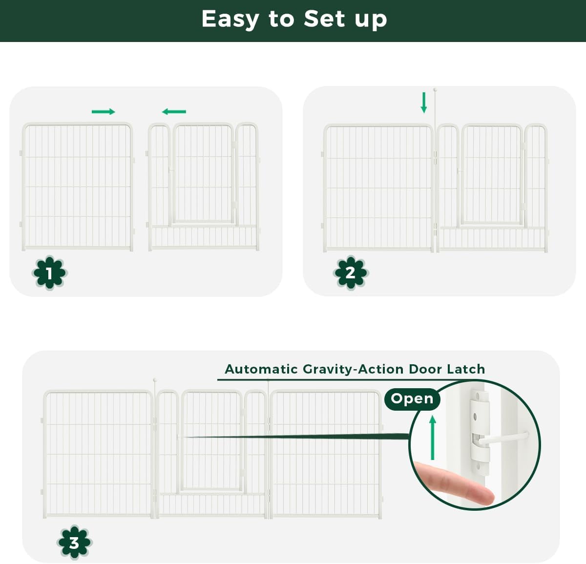 • Safe & Sturdy: Our fences have been tested by Intertek, an independent testing facility as well as passed California Proposition 65 to ensure safety for both people and our pets. Metal stakes are designed with rounded ball tips to protect from injury. The upgraded metal rods have been designed to be more easily inserted into the ground for more stability and rigidity, which ensures your dogs won't knock them over.