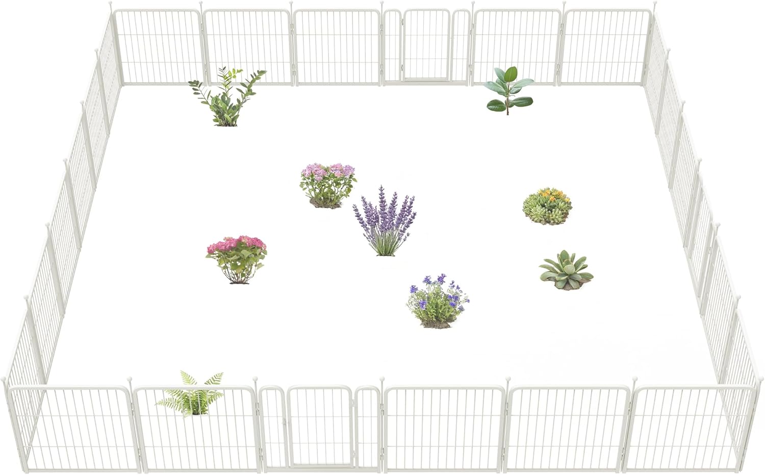 FXW Garden Fence Outdoor for The Yard – 24in(H) x 45.6ft(L) Heavy Duty Metal Animal Barrier for Dog and Rabbit, Decorative Dog Fence, 24 Panels, White