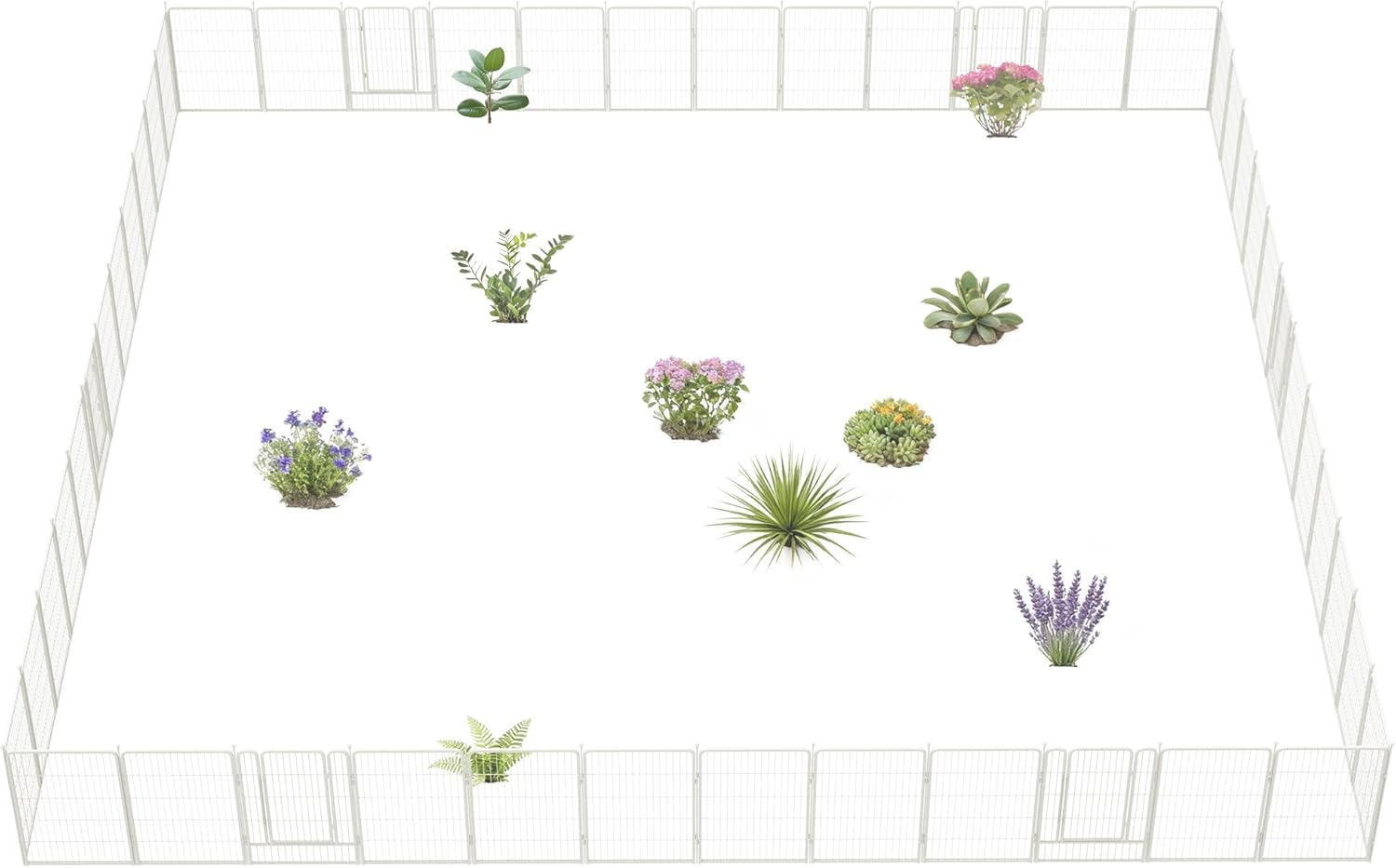 • Dimension: The height of each piece is 40 inch and the width is 2.28 ft, with a total of 42 panels and 6 pieces of doors. It's 109.4 ft long to connect all of them. The stake is 3.6 ft long, with a total of 51 pieces.