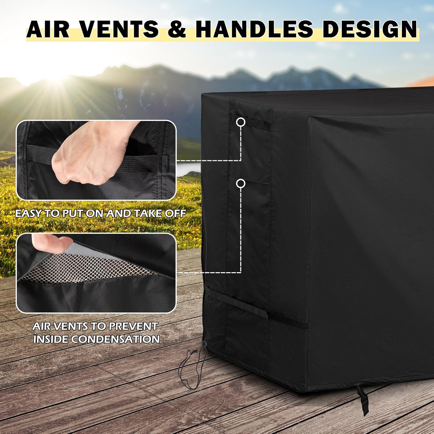 • AIR VENT & HANDLES – The design of the air vents can improve the air flow to prevent inside condensation, keeping your outdoor kitchen cabinet dry and clean. Two reinforced handles make the cover easy to put on and take off