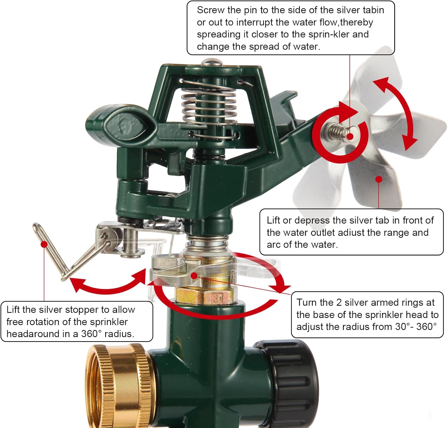 • Durable & Eco-Friendly Design: The green garden sprinkler is crafted from high-quality green zinc alloy, ensuring exceptional strength, corrosion resistance, and longevity. Built to endure harsh outdoor conditions, it resists rust, deformation, and wear, making it a reliable choice for year-round use. The IRRSTPRO sprinkler maintains peak performance even under intense sun or rain.