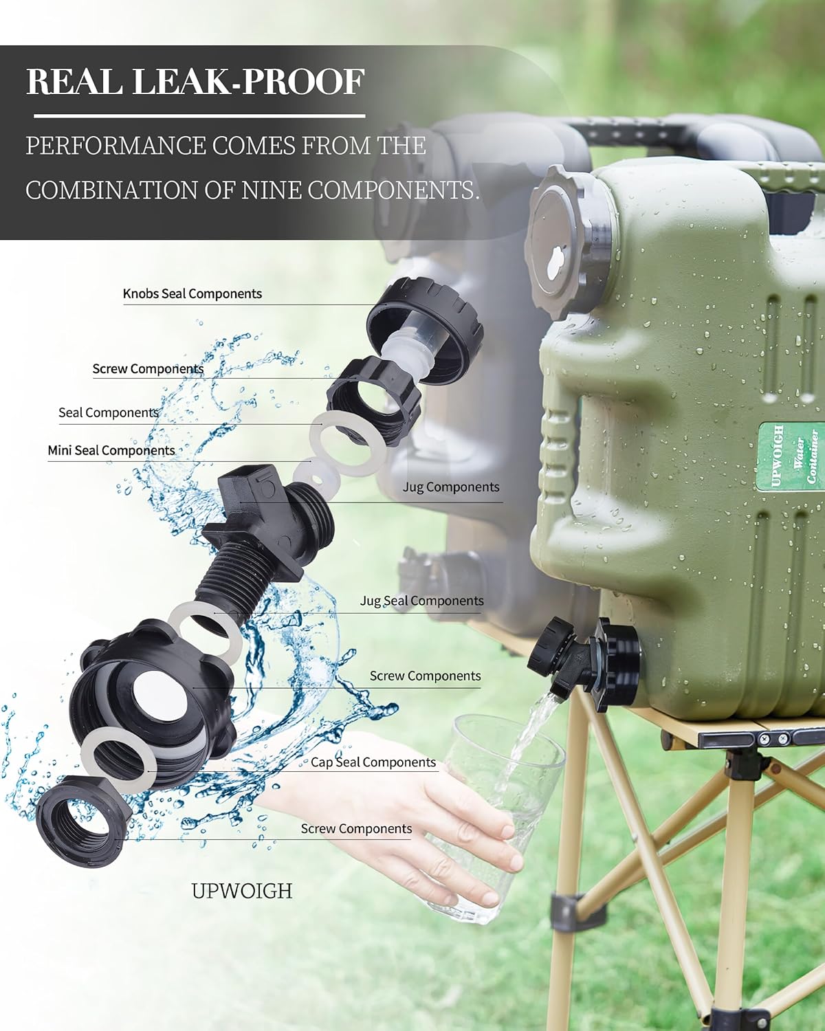 • Versatile Use for Camping & Emergency Preparedness:Ideal for outdoor adventures, survival situations, and water storage during power outages or natural disasters. With UPWOIGH 5-gallon water containers, stay prepared and hydrated wherever you go!
