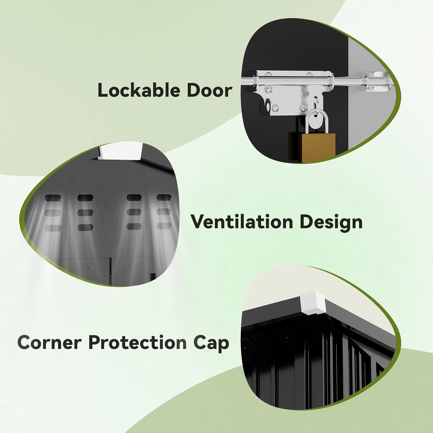 • Lockable Door and Vents:The lockable door provides security,keeps your tools away from being stolen,and avoids small animals from entering accidently;Two Top Vents for Better Airflow,Keeping the Space Cool and Odor-Free