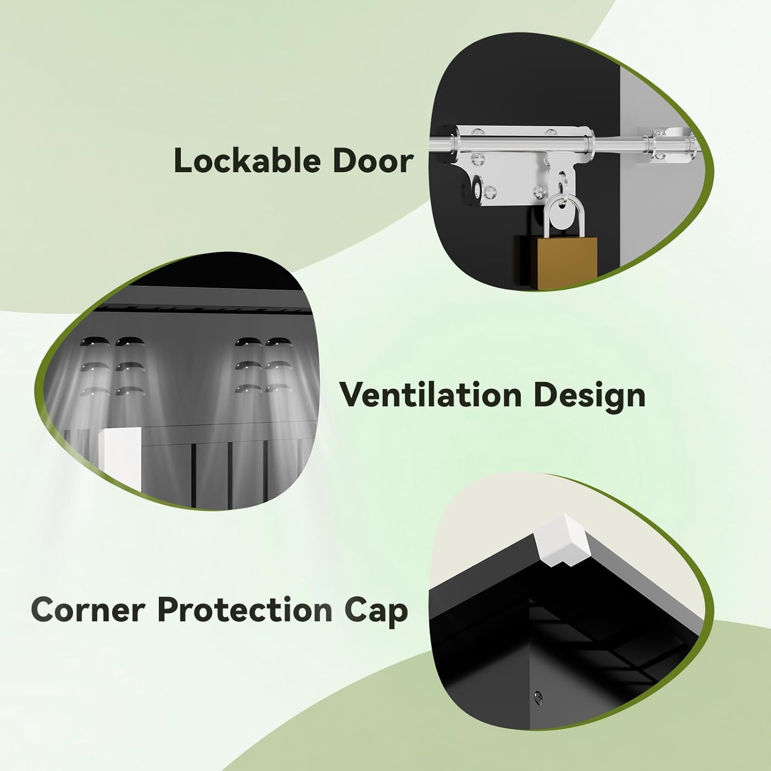 • Lockable Door and Vents:The lockable door provides security,keeps your tools away from being stolen,and avoids small animals from entering accidently;Two Top Vents for Better Airflow,Keeping the Space Cool and Odor-Free