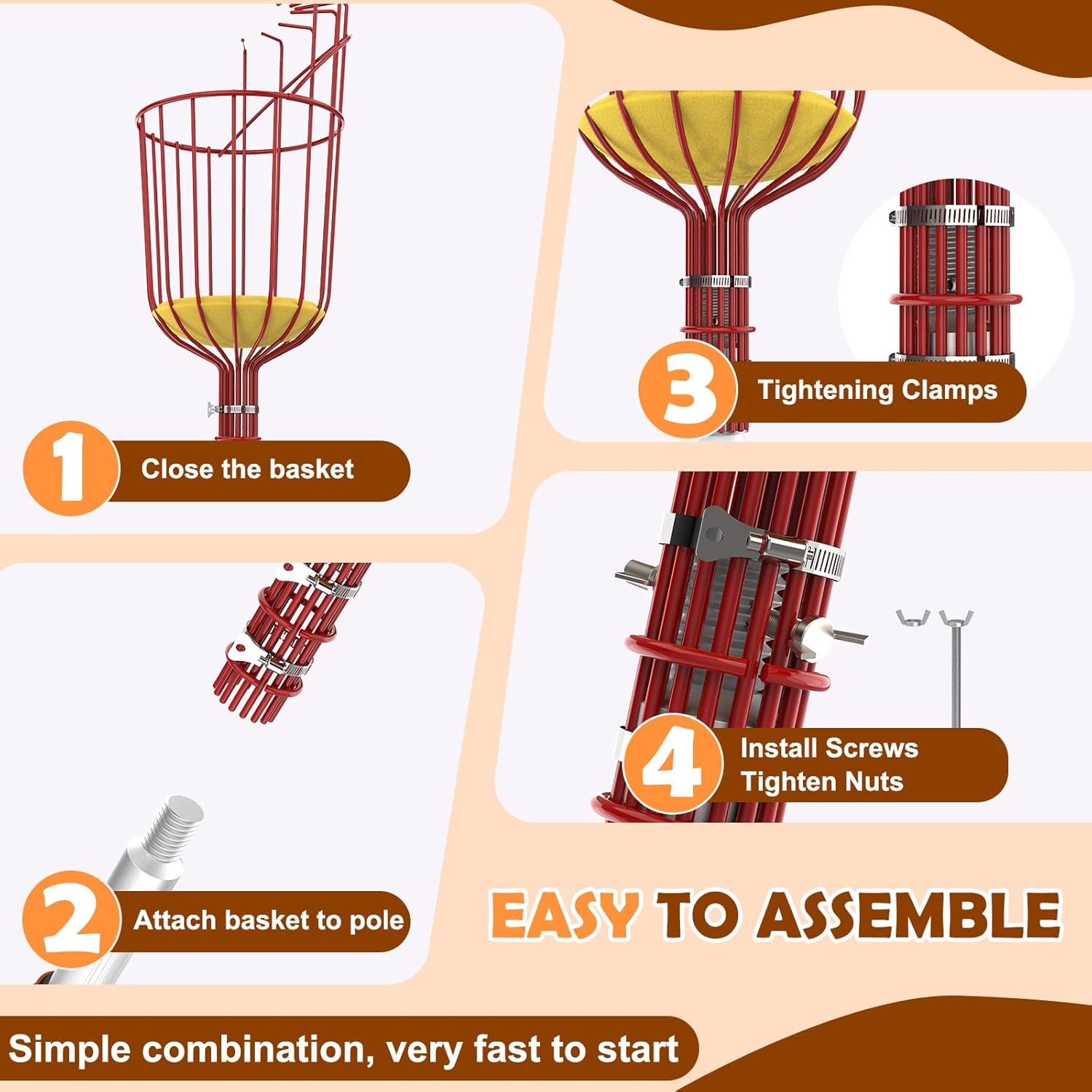 • Easy Assembly & Use: Assembly is a breeze with just a few simple steps. You can quickly attach the fruit picker pole with basket telescoping securely to the fruit picker pole without the need for additional tools, allowing you to focus more on harvesting. Whether you're an apple picker pole with basket user or a mango picker enthusiast, this feature saves you time and effort.