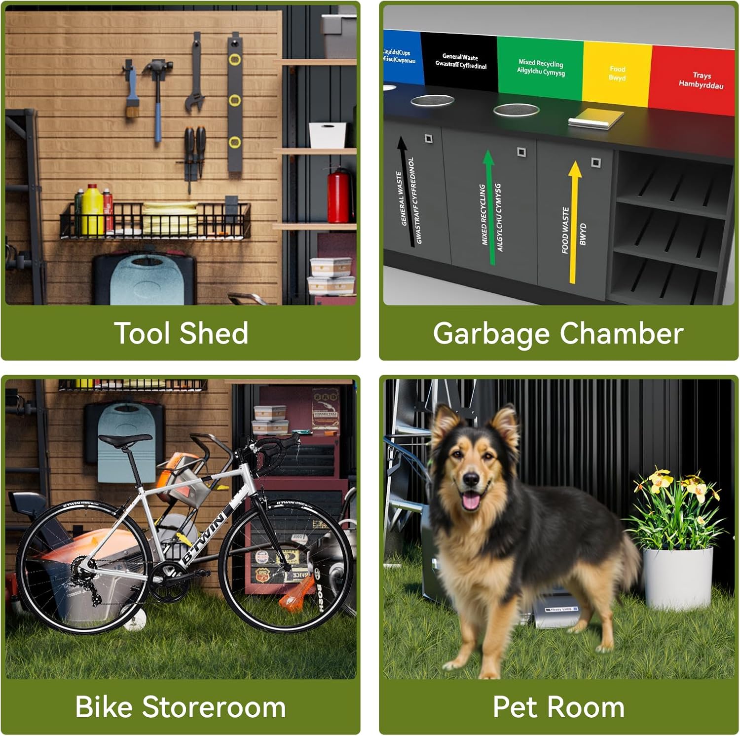 • Outdoor Shed:This storage shed is made of high-quality galvanized steel and covered with a powder-coated finish.Its durable construction ensures that it can withstand harsh weather conditions and ensure your items remain safe