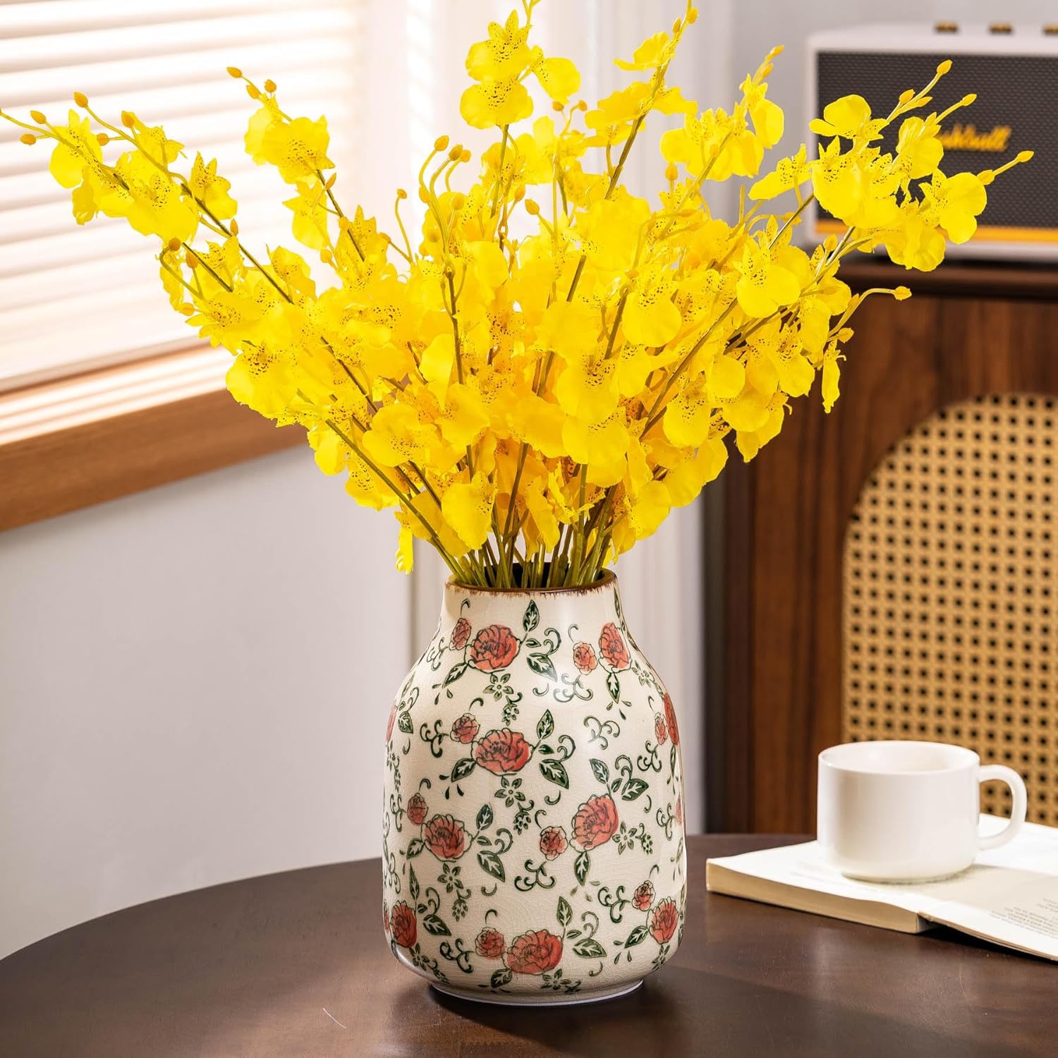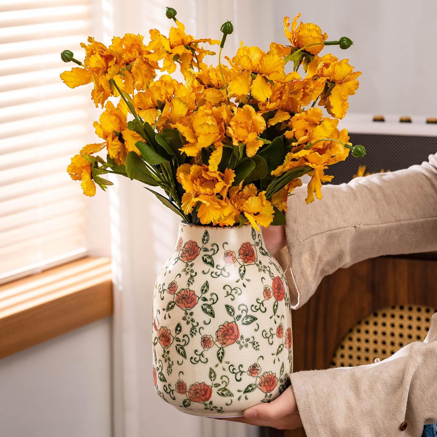 • PREMIUM CERAMIC CRAFTSMANSHIP: Crafted from high-quality ceramic, this green and beige vase combines durability with heirloom-quality beauty. The intricate crackle glaze and hand-painted details ensure it stands out as a unique piece in your ceramic vases for home decor collection.
