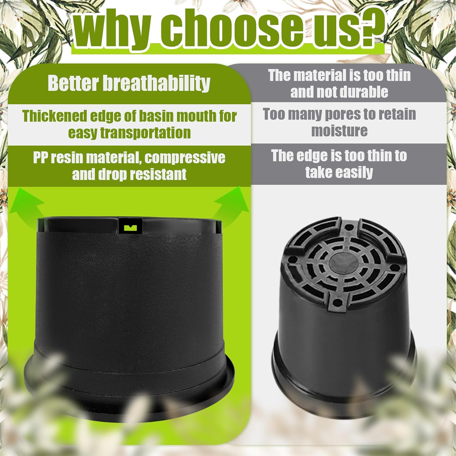 • Sturdy and durable - Plant pots are made of high quality PP plastic, which is tough, not easy to break or crack. Whether it is digging or daily use, it can withstand pressure and ensure a long service life.