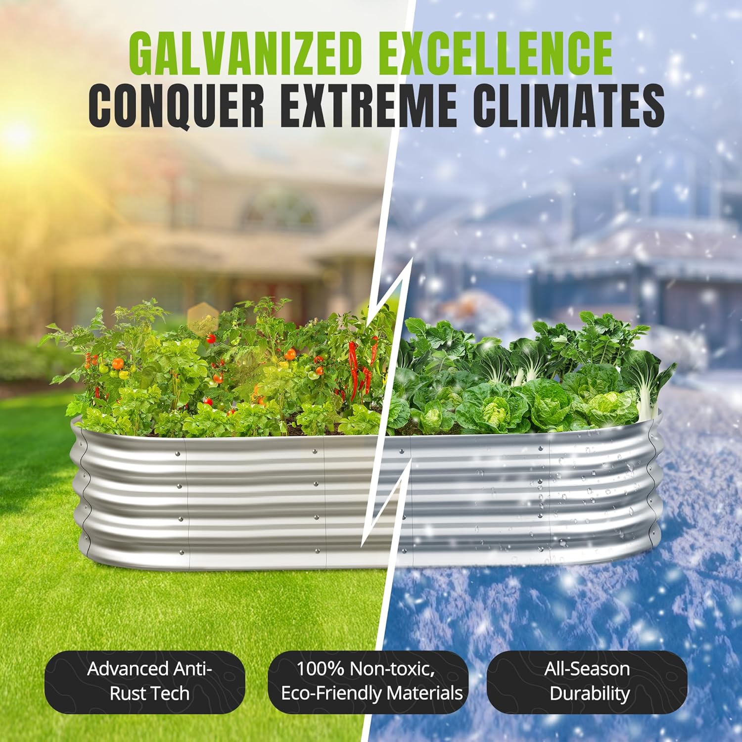 • 𝙐𝙥𝙜𝙧𝙖𝙙𝙚𝙙 𝙙𝙪𝙧𝙖𝙗𝙡𝙚 𝙨𝙩𝙧𝙪𝙘𝙩𝙪𝙧𝙚: Raised garden beds outdoor are made of high-quality galvanized metal sheet, double-layer anti-corrosion galvanizing and oval structure design, which is more beautiful, has excellent load-bearing capacity and anti-rust performance; is not easy to loosen; the interface will not deform; adapts to a variety of environments, and is durable