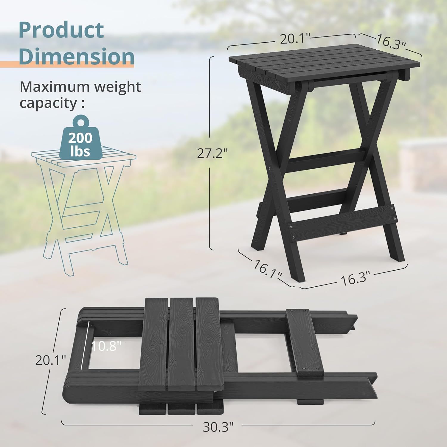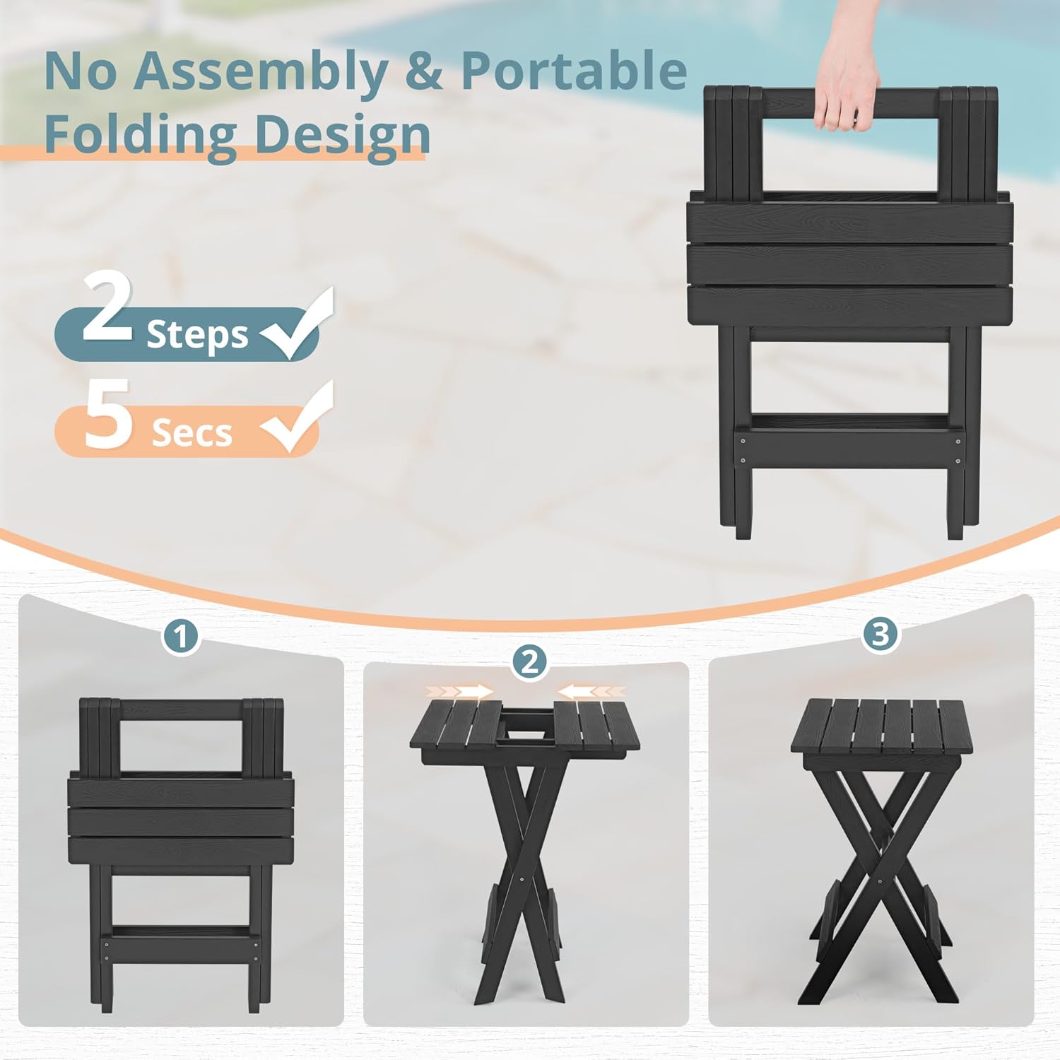 LUE BONA 27 inch Folding Side Table, HDPS Outside End Table for Patio, Porch, Deck, Pool, Weather Resistant, Black
