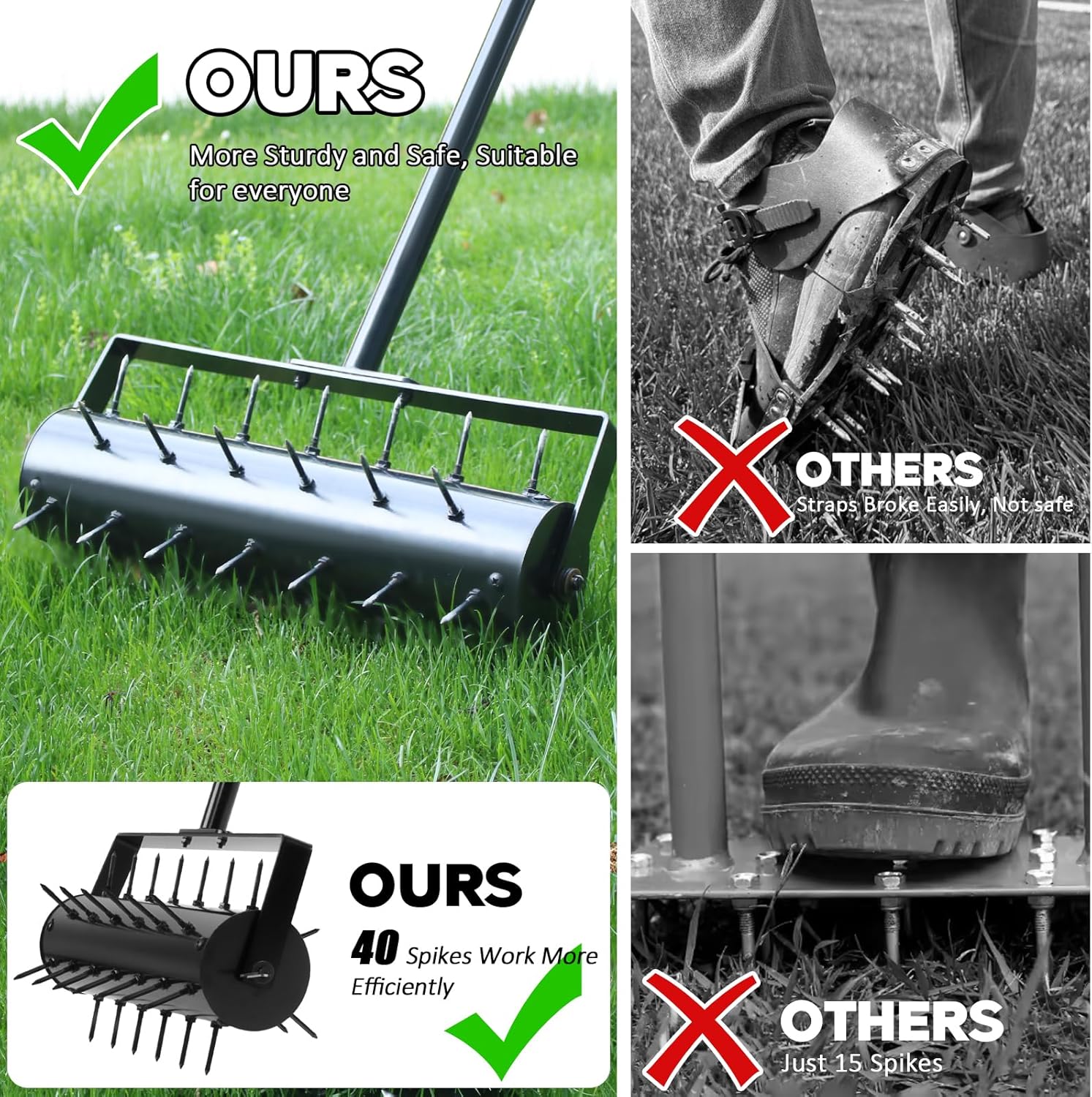• Easy to Use & Time-Saving - Simply push the rolling aerator across your lawn to aerate with ease. The wide spike drum covers more ground in less time, saving effort while delivering professional-grade results.
